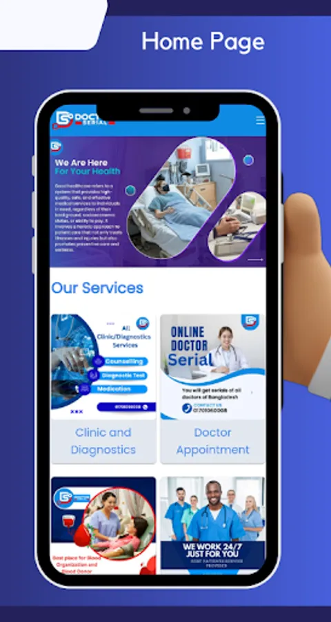 ৬। যেকোনো জায়গায় থেকে আপনাদের সেবা সমূহ দেখতে পাবে এবং পছন্দ মত ডাক্তারের সিরিয়াল দিতে পারবে।