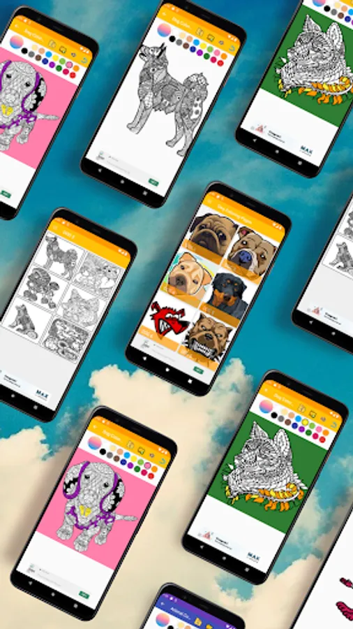 We always feel stressed out in daily life, here we offer you a free dog coloring book to relax yourself. In this coloring game free, you will enjoy the coolest experience of painting and creating artworks! And make the world become colorful and alive under your fingers!