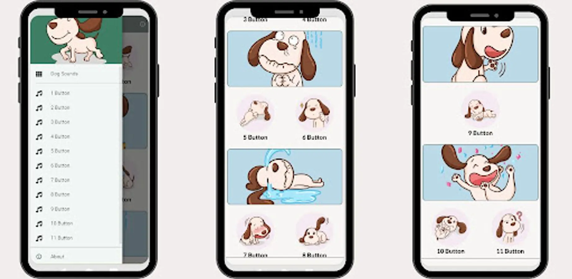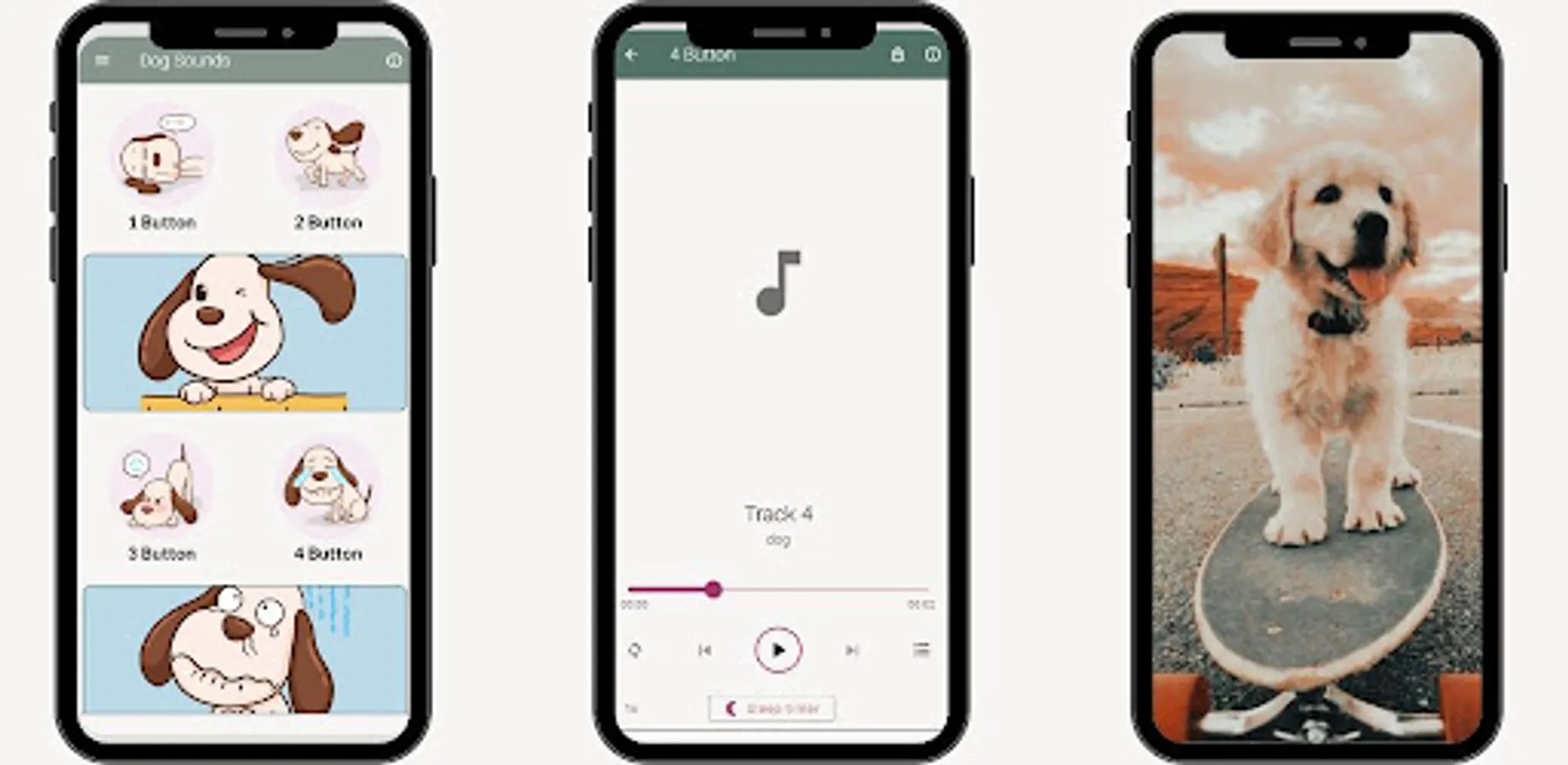 Dog Sounds contains different dog sounds, so you can listen to them anytime.