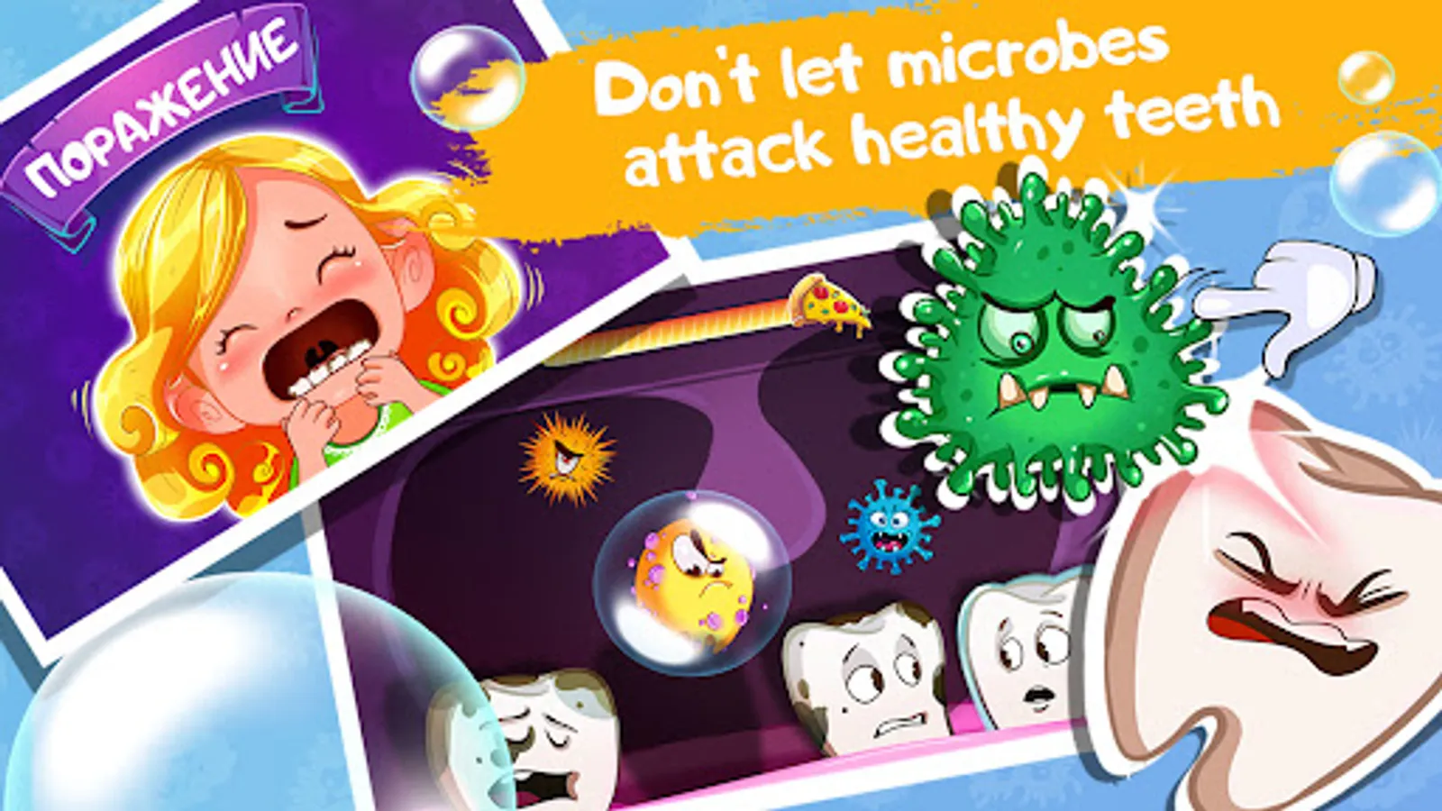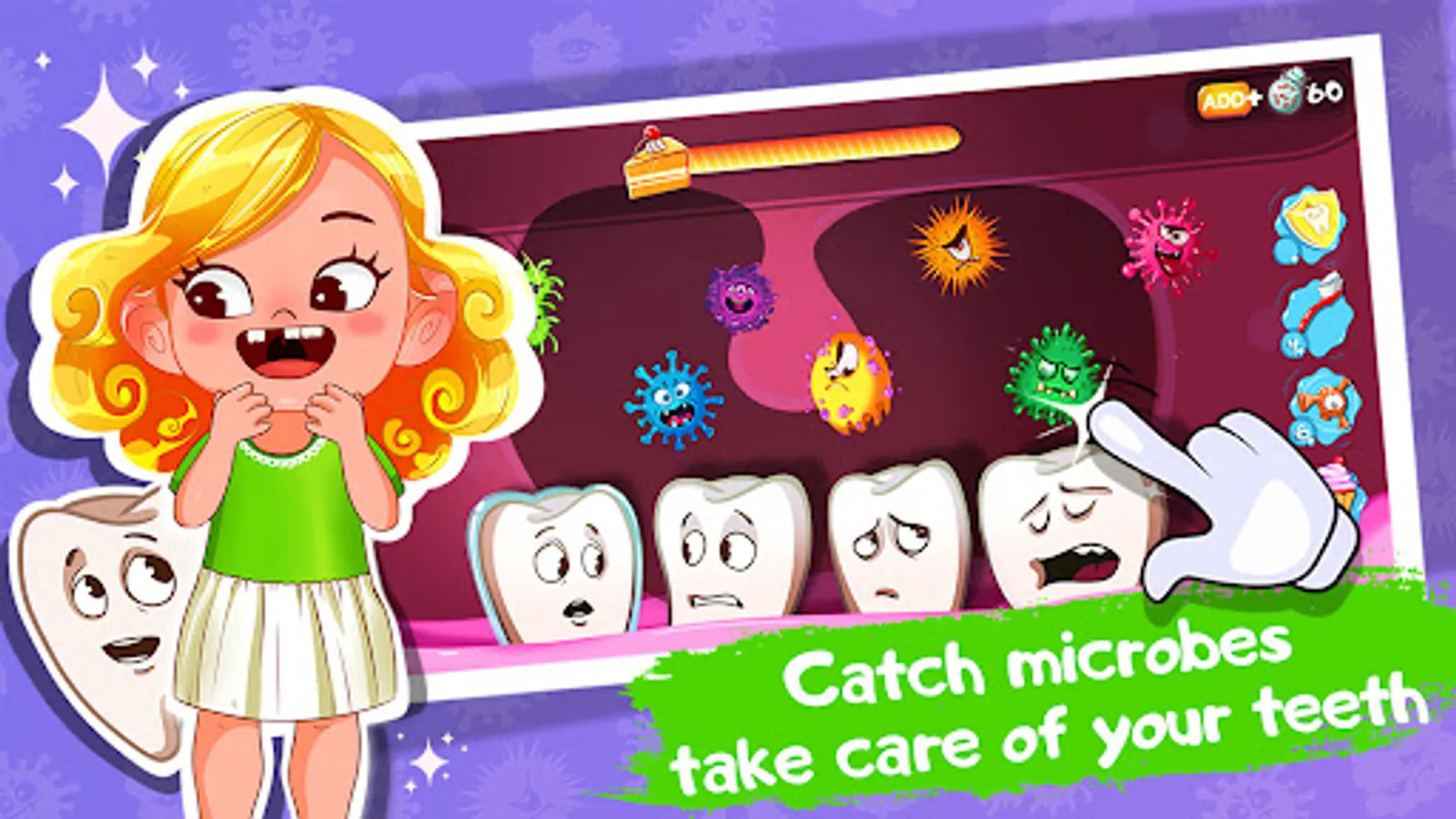 We've thought of everything! Kids game for girls, kids game for boys, games for little kids and their parents, this game for a whole family! And it’s okay if kids don’t cope with germs - they can clean teeth💥 in mini games and save it. Game for toddlers showing how dangerous germs are and teaching how to fight them - amusing the amazing game!
