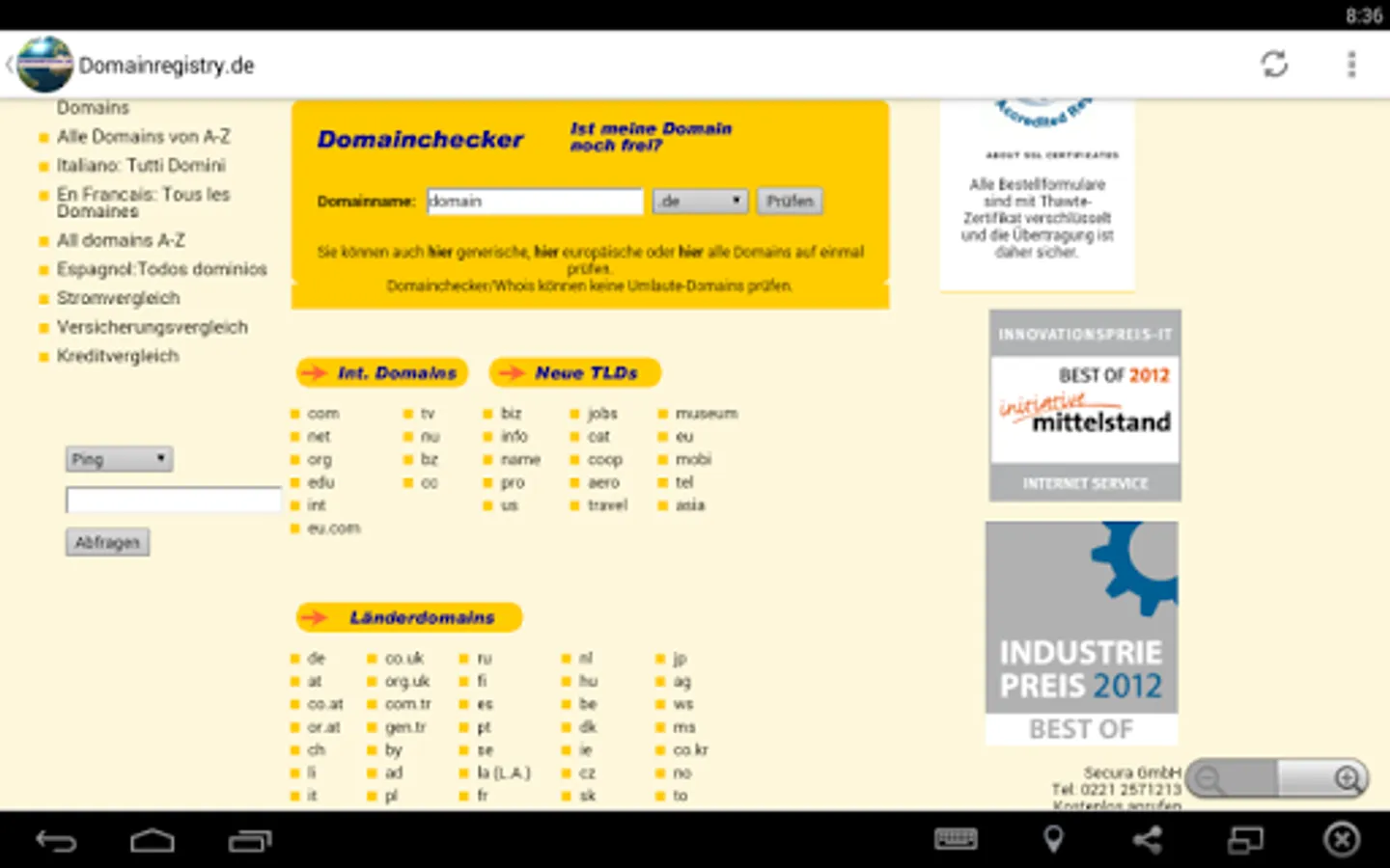 When IT Innovation Award from Initiative Mittelstand 2016 Secura was qualified as an innovator. When IT Innovation Award from Initiative Mittelstand 2012 Industriepreis landed Secura GmbH 2012 among the best. When HOSTING SERVICE PROVIDER AWARD 2012 & Secura narrowly missed the winning Nomierung.Seit 2013 Secura also at the New Top Level Domains very active. Secura is also Official Agent of the Trademark Clearinghouse.