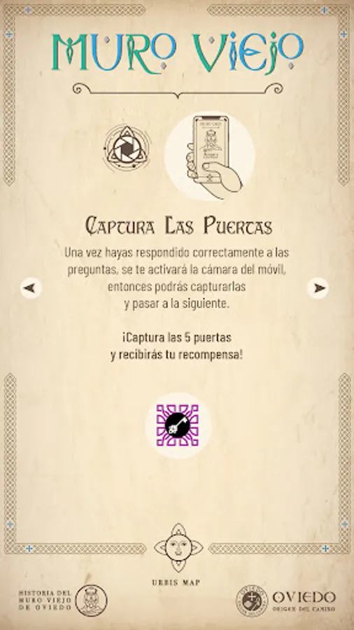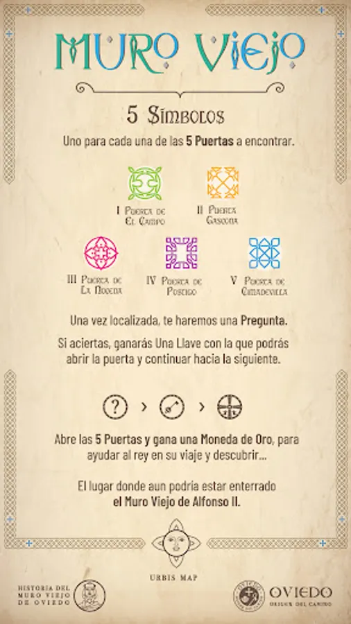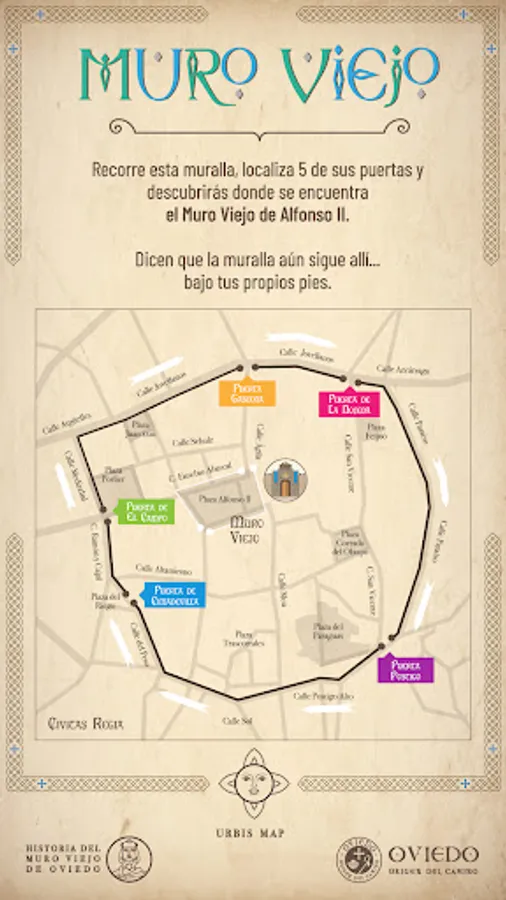 Help our king Alfonso II "The first pilgrim", unlocking the doors indicated on the URBIS MAP. Correctly answer the hidden questions in each location to become Protector of the City and the Kingdom.