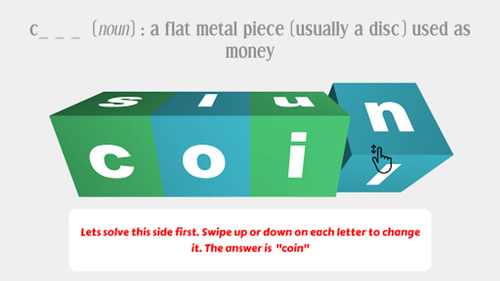 • If you couldn't guess the word on one side just turn the entire puzzle to see another clue and try to solve it. This gives you 4 chances for solving each puzzle.