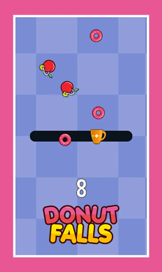 New Donut Falls is full of delightful game modes, features and challenges featuring the Donut Friends! The challenge is to collect the falling donuts🍩 by simply sliding the coffee mug from side to side, however be careful not to touch the falling cherry bombs🍒.The adventure begins in easy mode with the game gradually becoming more difficult over time. Come and gather tasty donuts in the all new Donut Falls🍩 game!