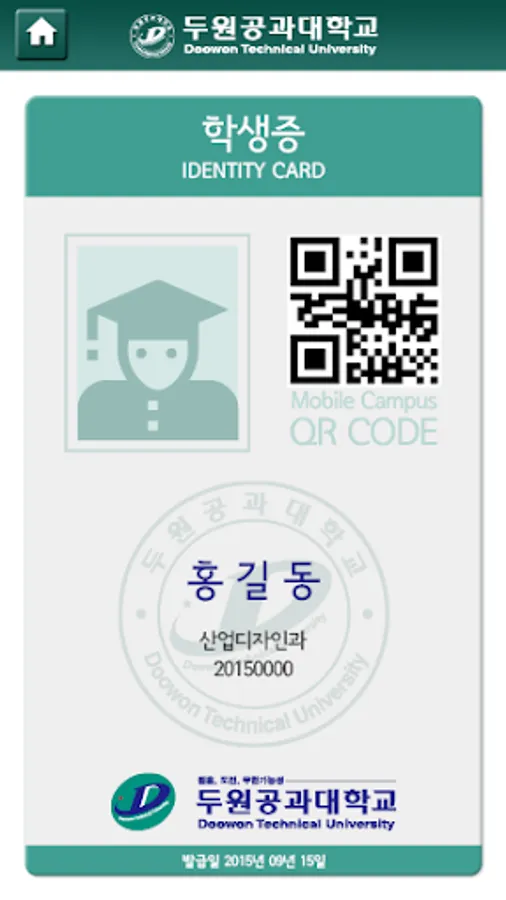 This is a mobile student ID provided for Doowon University of Technology students to use the library.