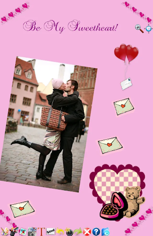 After installing, from inside DoodleWish just click on the stickers Icon/Button, the 3rd icon from the left, and then slide the slot-wheel to choose this Valentines1 pack.