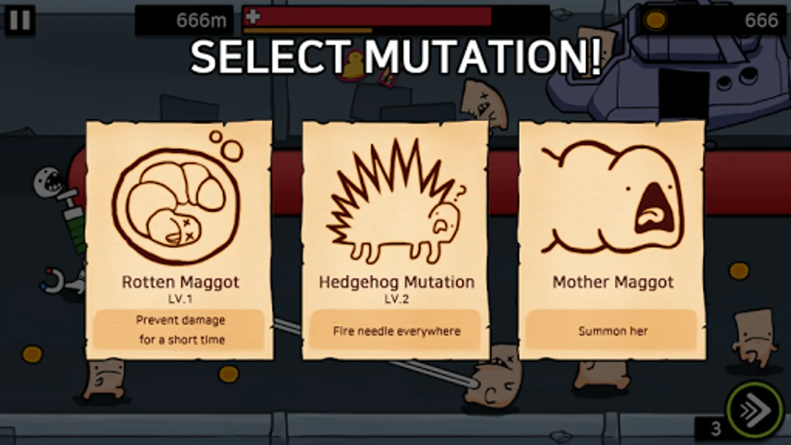 Every time you gain meat, you can select mutations to make your specimen stronger.