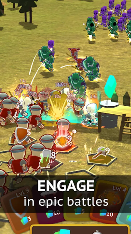 Test your strategic skills on the battleground. The rush of goblin raiders caught everyone off guard. But you can reclaim the territories and restore the tears of the kingdom! Merge your weapon and element cards to obtain higher-level cards and gain an advantage in battle. However, that won't be enough to win - in every battle, you need to adjust your strategy, considering the troops and abilities of your opponents.