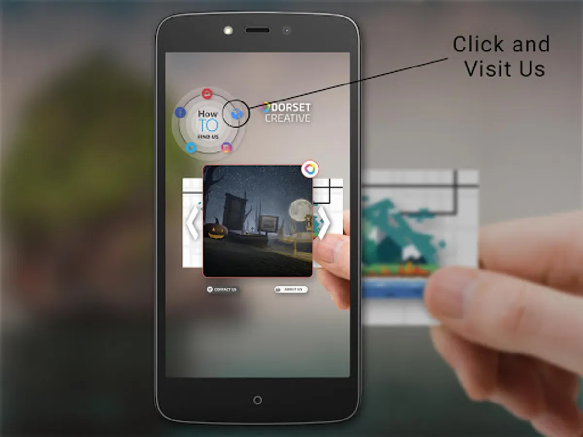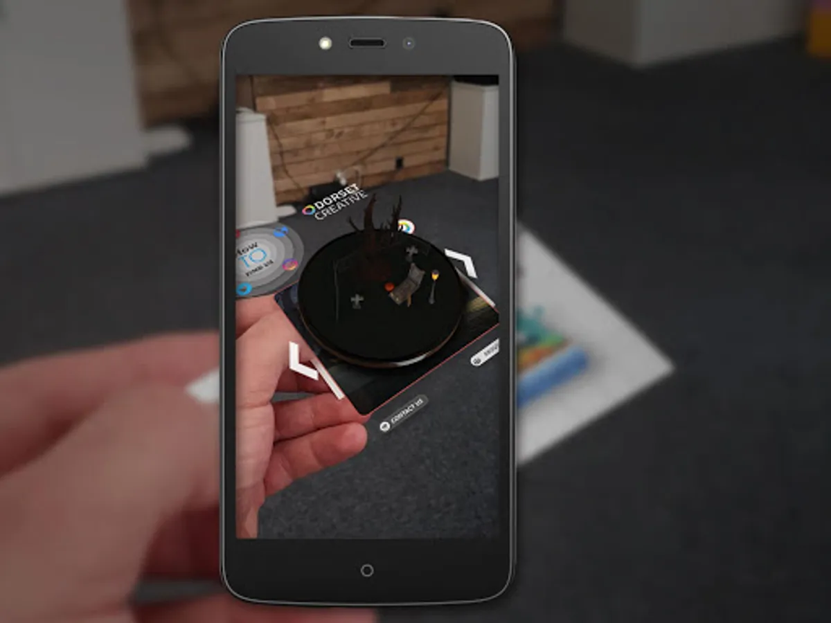 (For Android phones only). An augmented reality (AR) business card which provides a contact book including direct social media links and also gives a small showcase of our work in an AR / 3D environment.