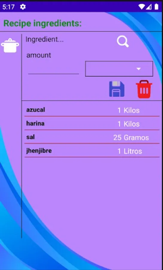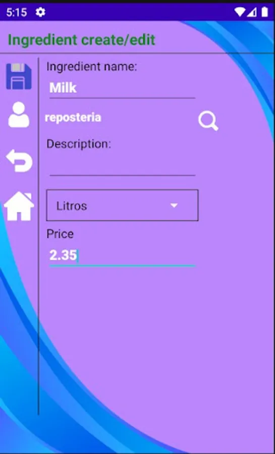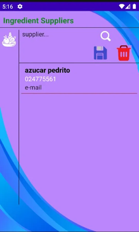 You will be able to register the data of the suppliers of the different ingredients.