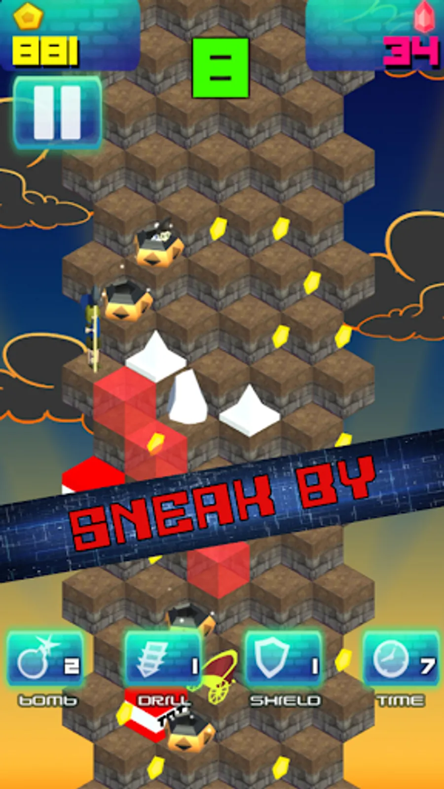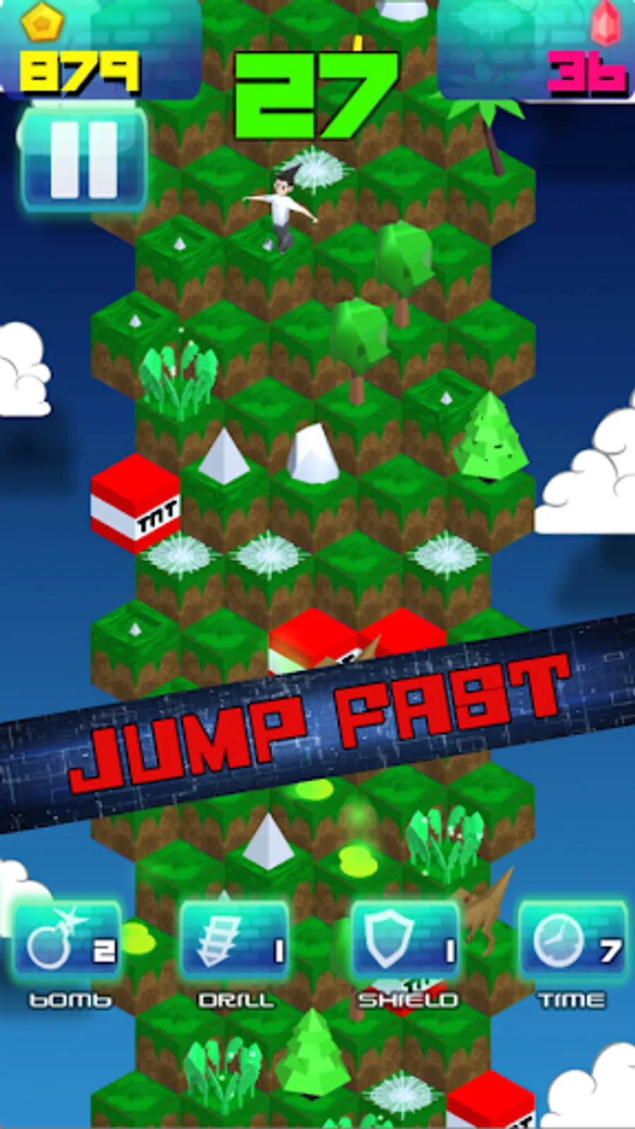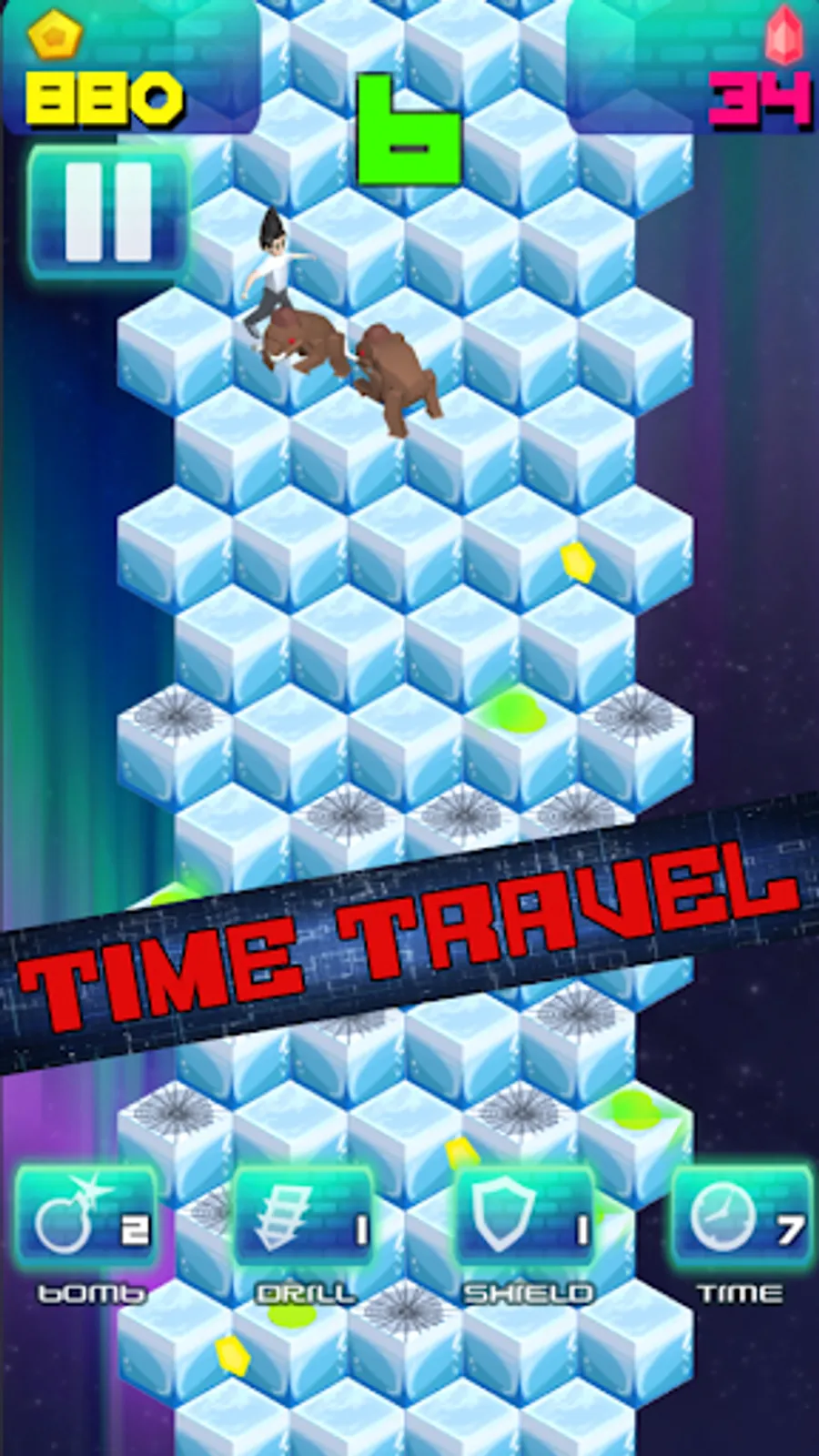 In Epic Hop, make your way through 42 levels spanning 3 time eras: Jurassic, Ice Age, and Ancient Rome (With more eras coming soon!). Hop your way down randomly generated hills, avoid obstacles, hazards, and enemies! You will have to rely on your wits, but also high tech gadgets that let you pull off awesome abilities, such as a ring of explosions, slowing down time, a force field, and digging underground! At the end of every era comes is an epic fight where you have to defeat a boss that has followed you into the time vortex!