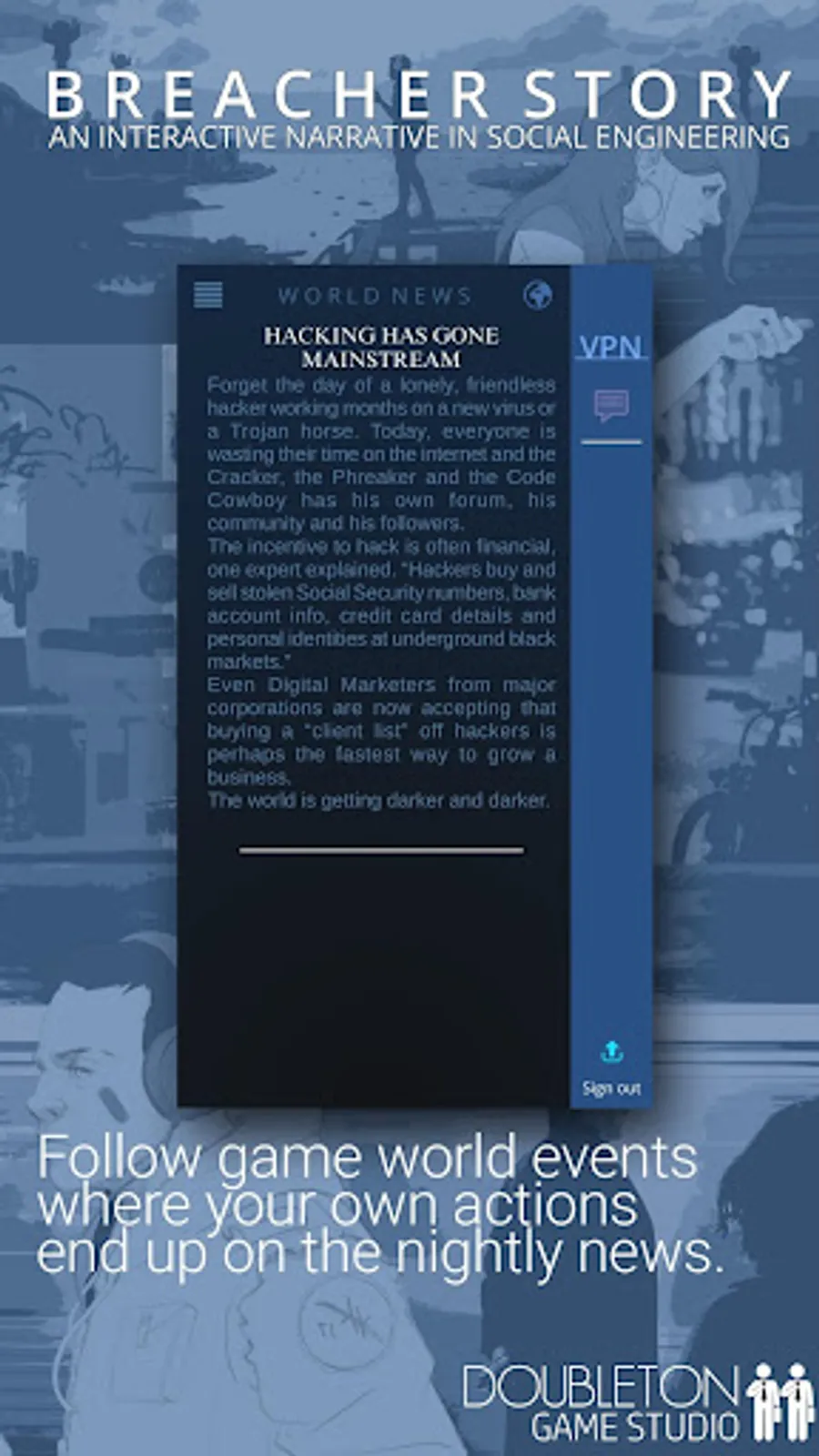 Breacher Story is a playable narrative experience that dives deep into the world of cyber-security, conspiracy theories and social engineering.