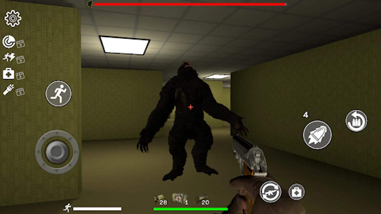 Collect items to help you on your journey, and be wise since they are scarce in the mazes of terror in the backrooms, be careful to not run out of ammo, it can cost your life inside the backrooms, be clever and assemble a strategy for the perfect hunt strategy to defeat Bigfoot inside the Backrooms, take caution he can attack you anytime!