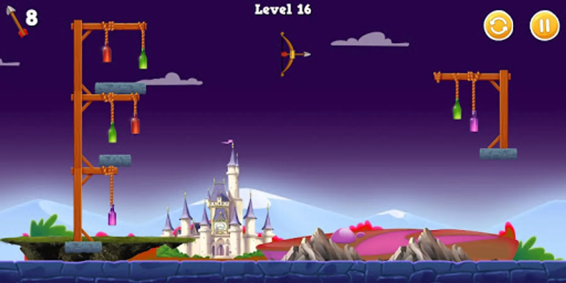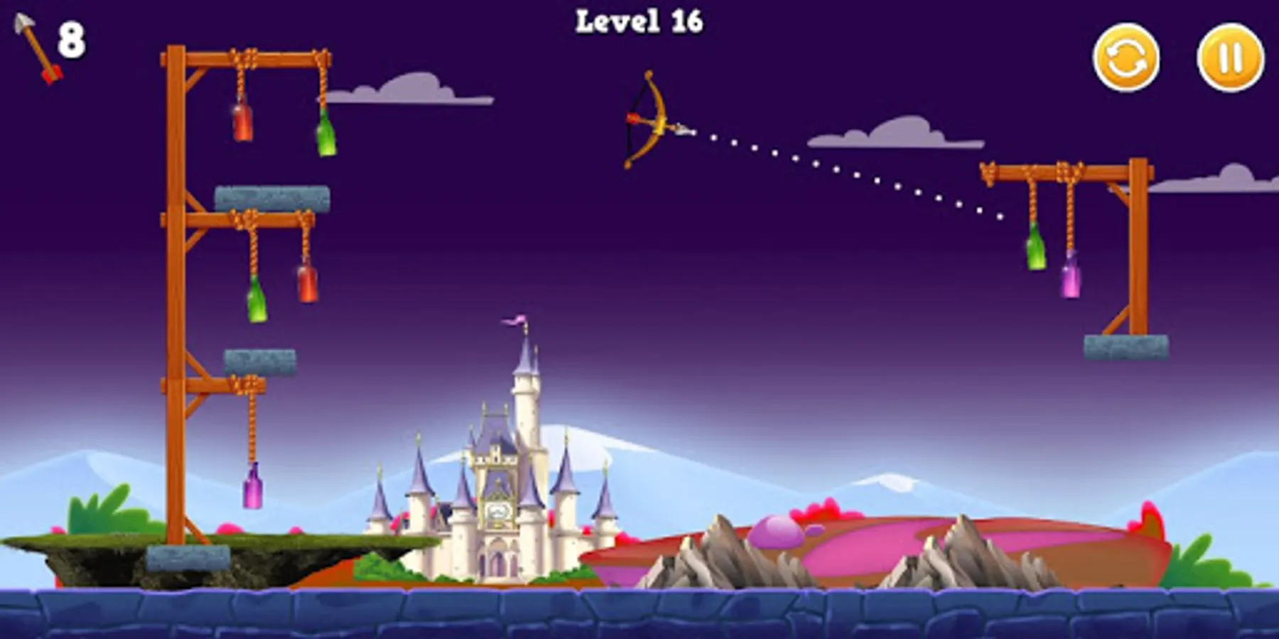 Archery Bottle break game comes up with new exciting gameplay with stunning 3D scenarios. The best and unique driving archery game is back with all new features. You will assign with bottles in each level, aim and shoot with bow arrows. Be careful, you will get limited arrows in each level. Don’t waste you arrows and keep eyes on time. Be sharp at aiming and shooting bottles.