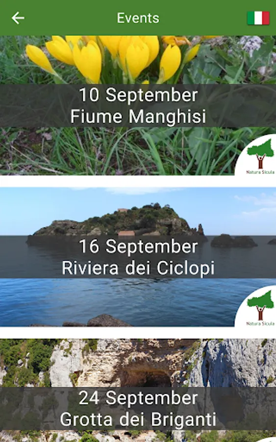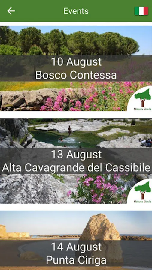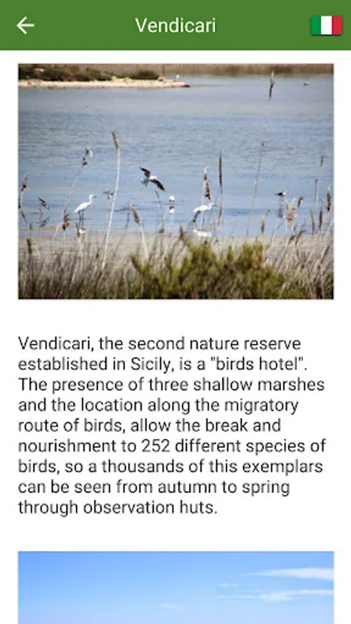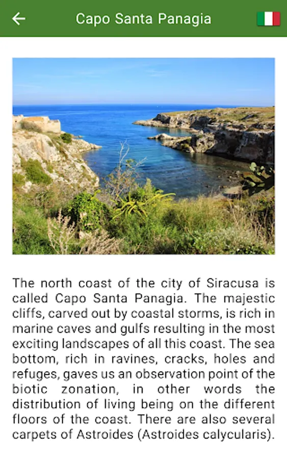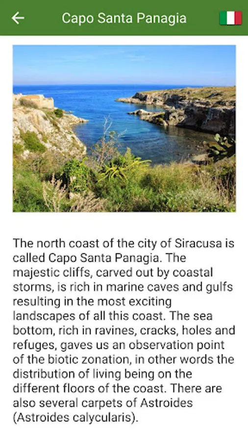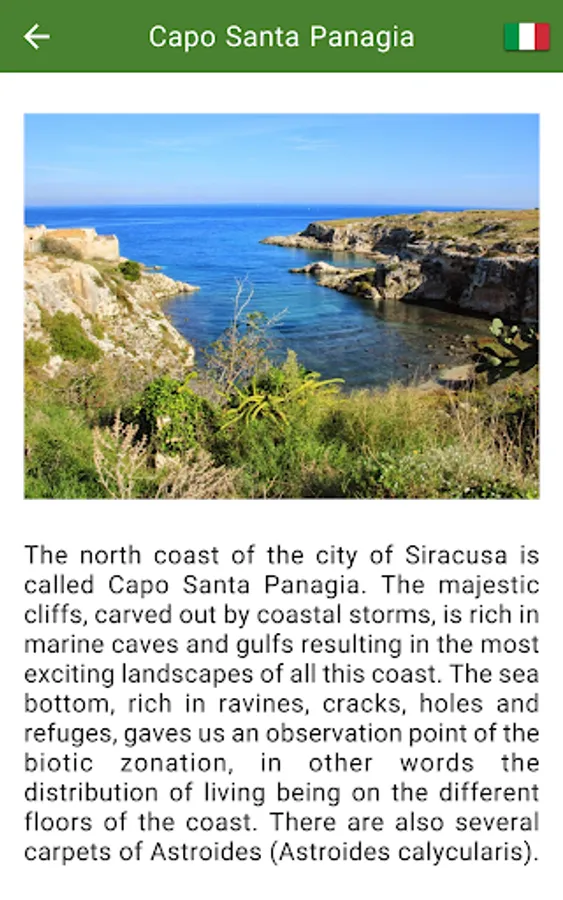 In detail the app contains a list of natural sites like marine protected areas, nature reserves, valleys etc., with detailed descriptions, photos and contacts.