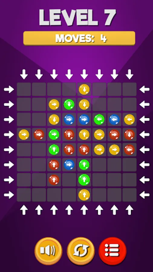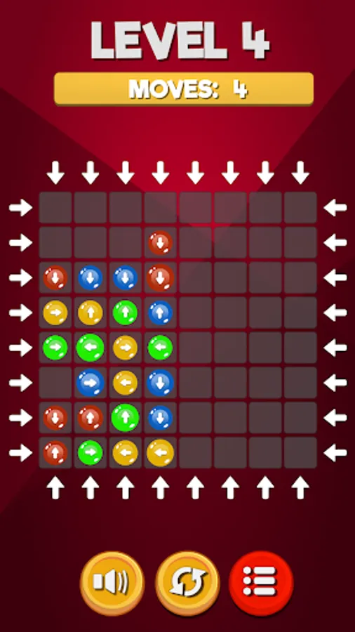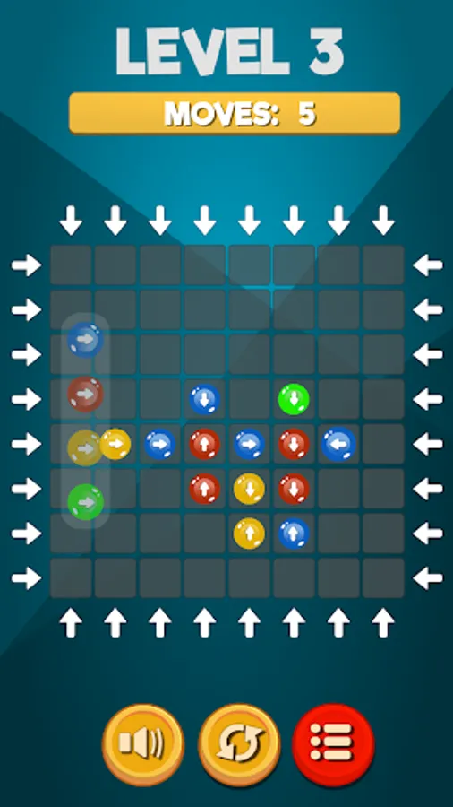 Match three blocks of the same color to make them dissapear. The remaining blocks will move to free spaces depending on their directions.