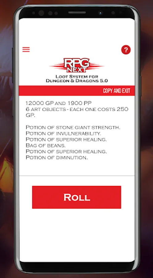 RPG Next is an application to DnD 5th Masters that assists in the generation of loots quickly and automatically.