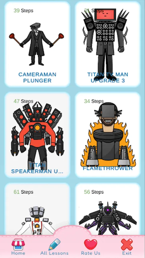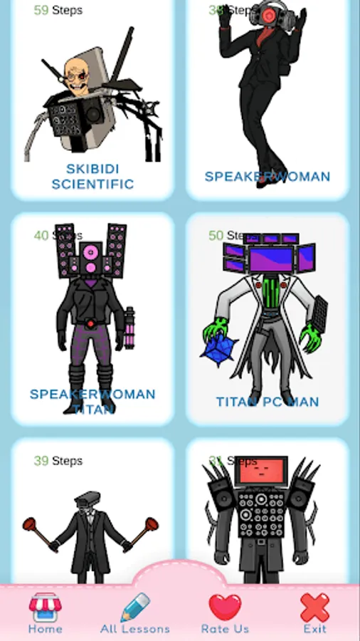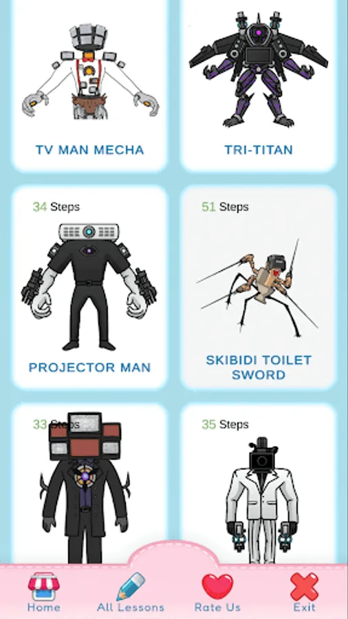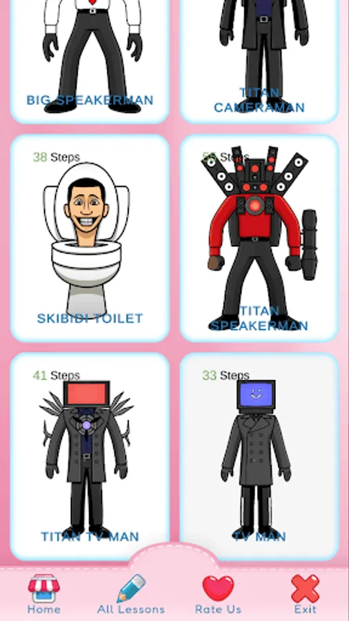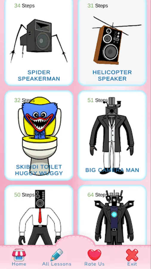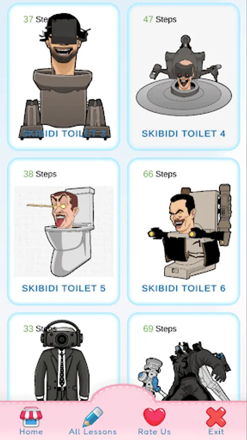 The How to draw skibidi toilet app contains detailed lessons on how to draw the popular cartoon skibidi toilet characters. With easy-to-follow instructions and clear illustrations, you'll quickly master the techniques you need to create your own stunning character illustrations.