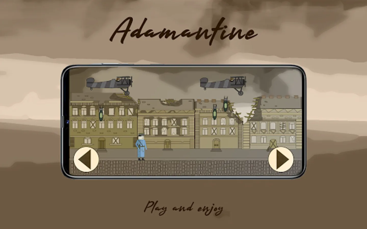 Adamantine is a 2D arcade game that takes you into The Great War (World War I). Avoid bombs and armored vehicles. As we continue to improve our game, you will help us if you download Adamantine and share it with your friends.