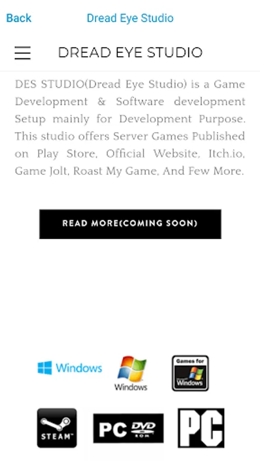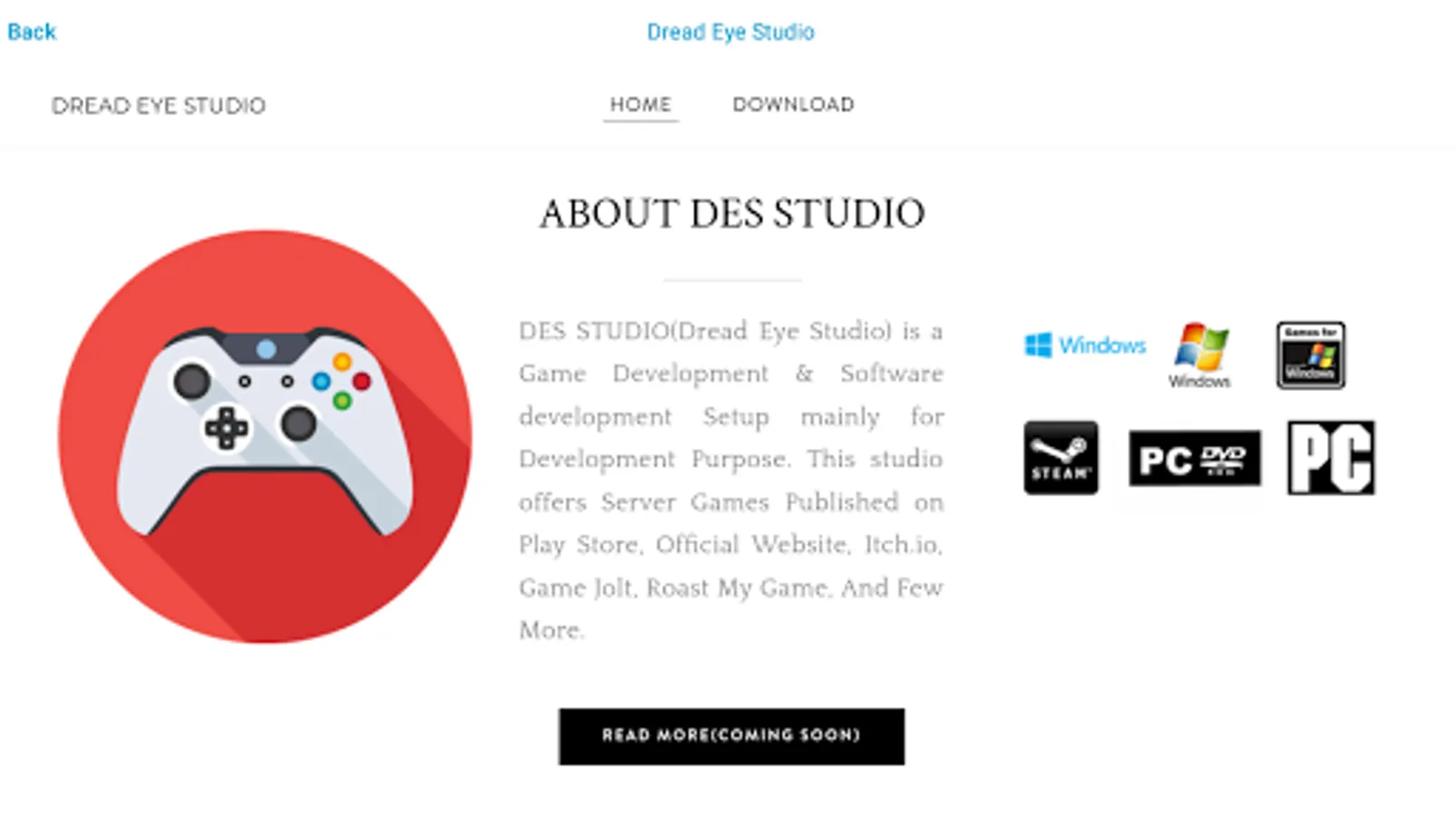 This Dread Eye Studio app provides a collection of information about "Dread Eye Studio" as well as our published game & currently working game's. We take development process seriously by developing tool, software, game, services & etc.