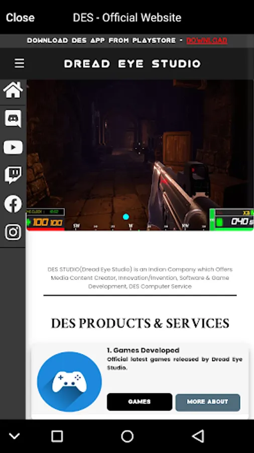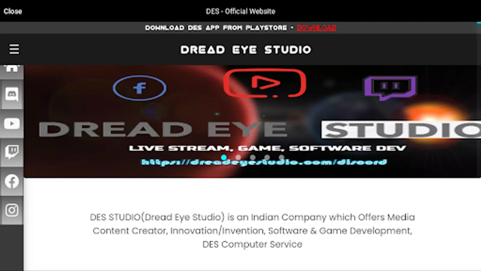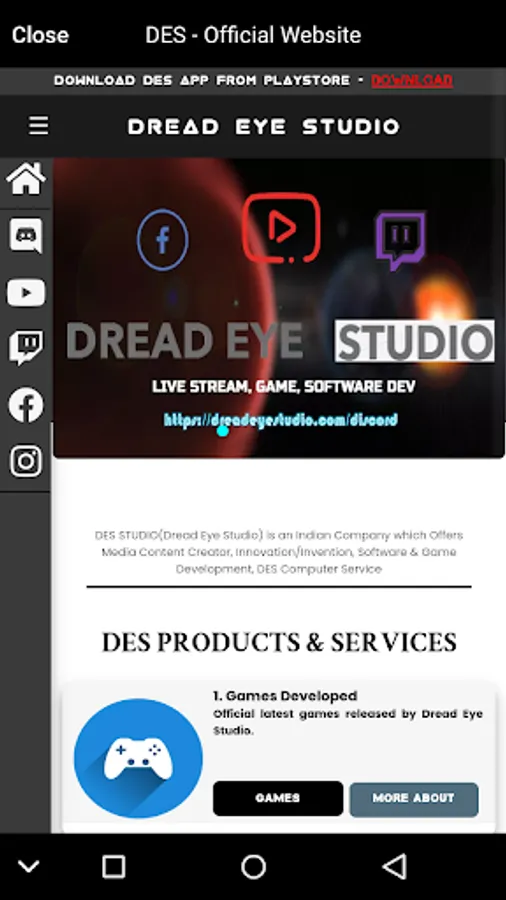 5. DreadEye Studio Social Icons and Details.