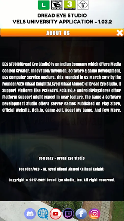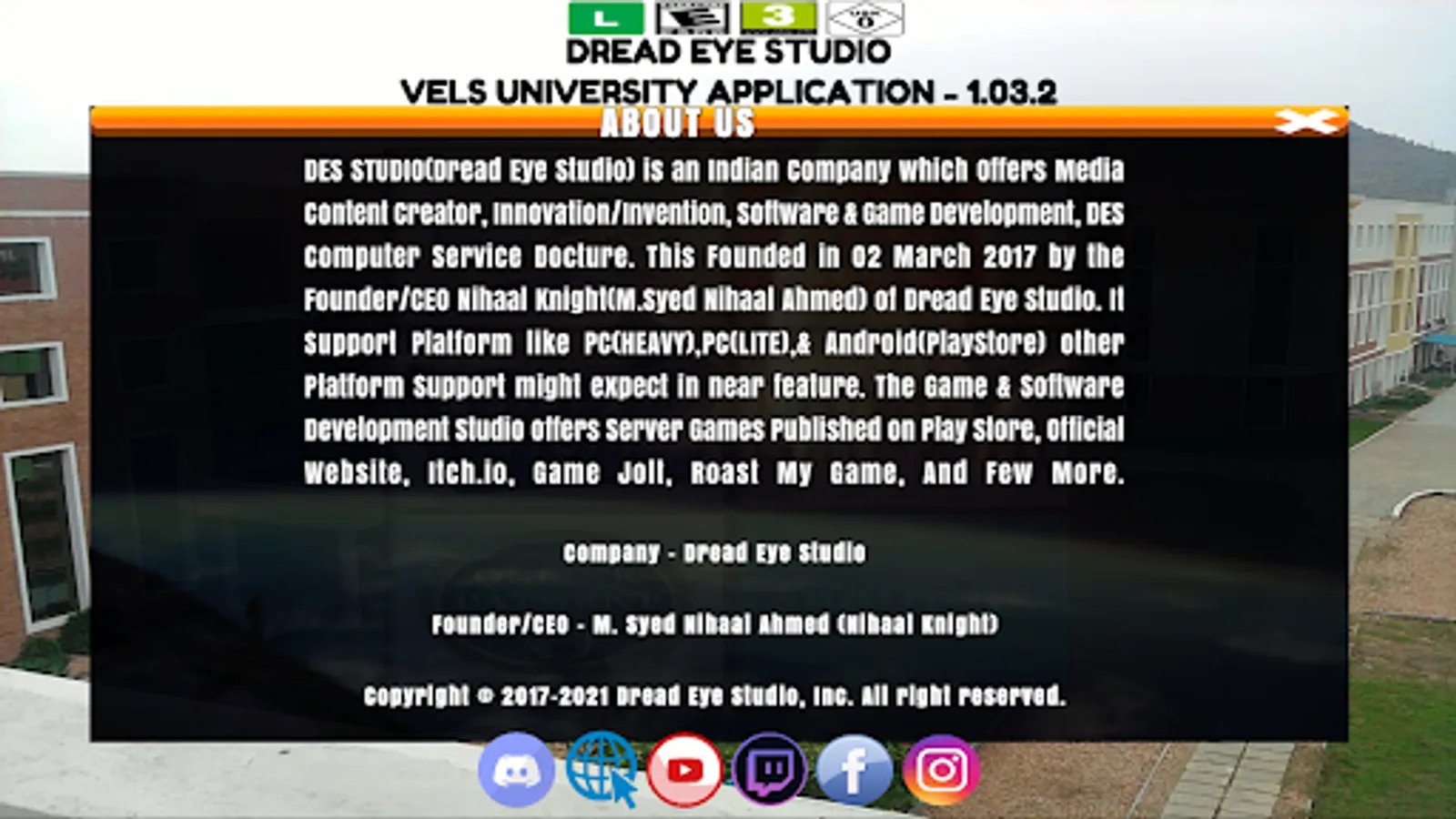 3. DreadEye Studio Social Icons and Details.