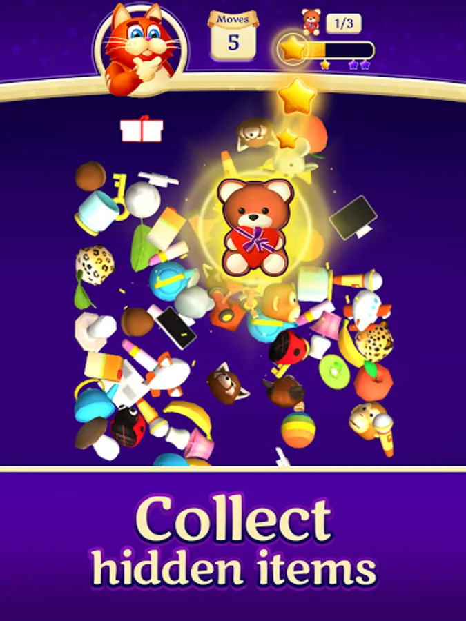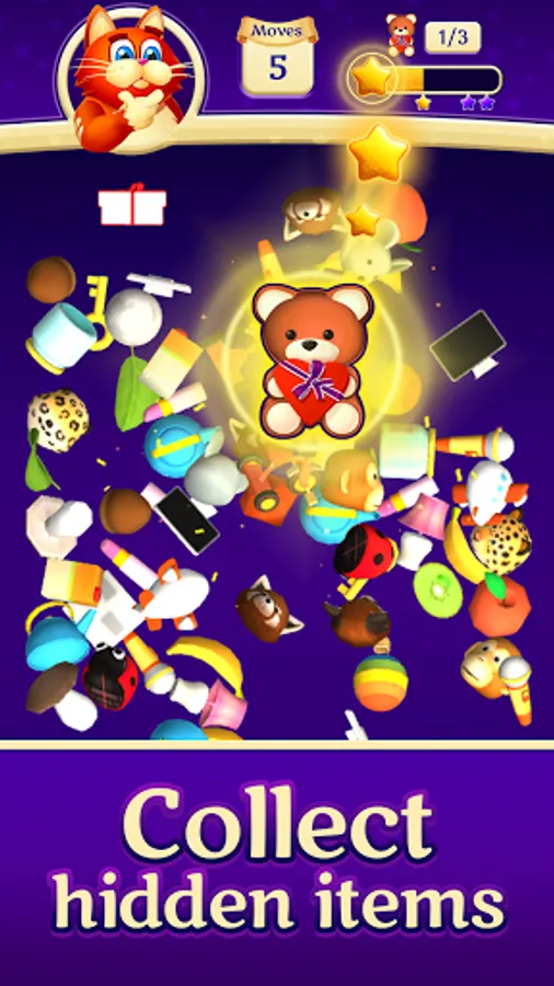 Mittens the cat has a soft spot for teddy bears! In some levels you’ll need to find the teddy by matching 3d presents until the perfect present is found. It may sound easy, but only tactical players will be able to create the combo matches required to complete Hard levels!
