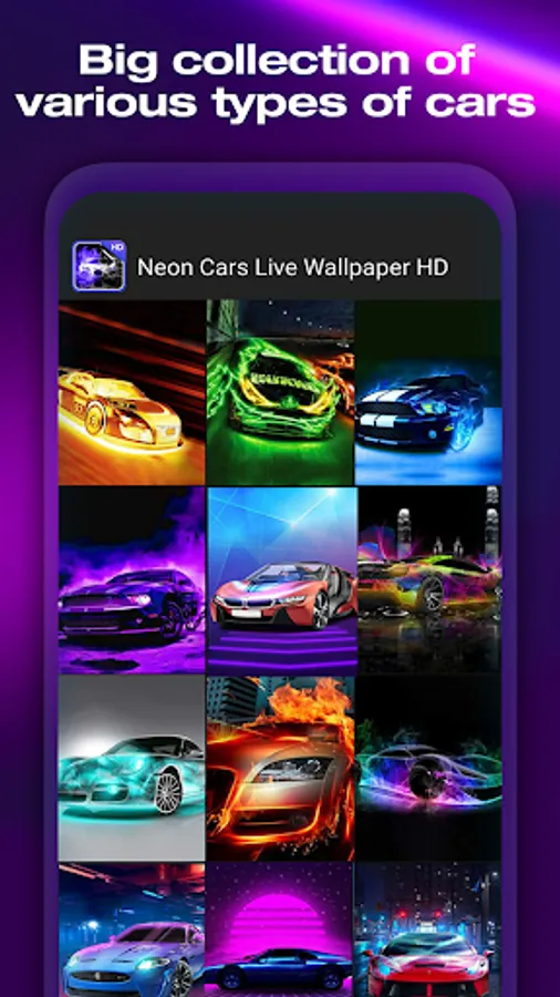 The Neon Cars Live Wallpaper app offers amazing and awesome-looking pictures of your favorite vehicles that will make your phone look so powerful. Your device will radiate excellence combined with masculine excellence. Download live neon wallpapers and backgrounds and have the phone screen you deserve.
