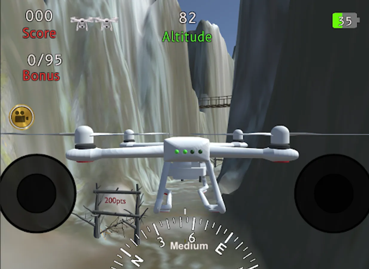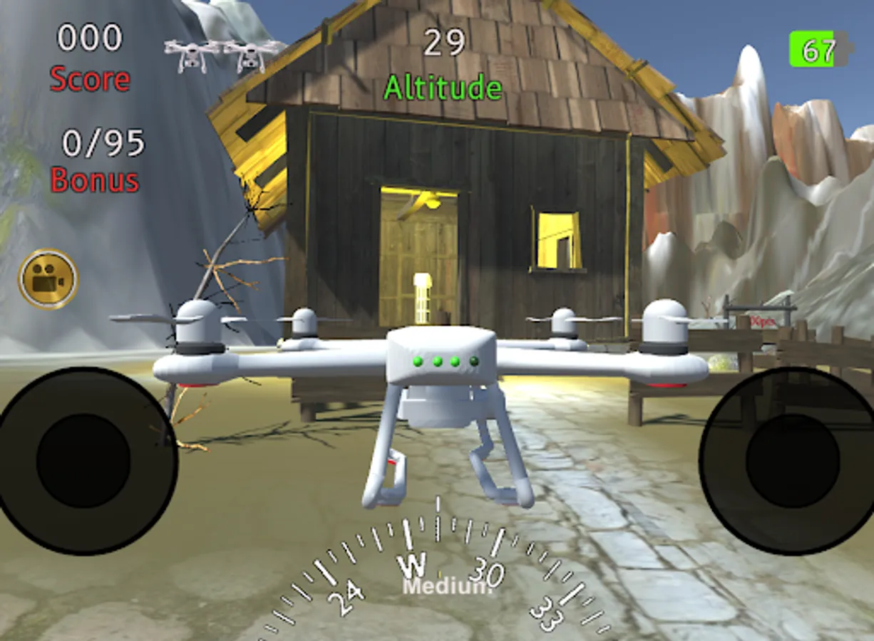 The goal of this game is to pass a number of obstacles without damaging your drone. You will have the opportunity to repair your drone and recover charged batteries to allow you to go to the end of this course.