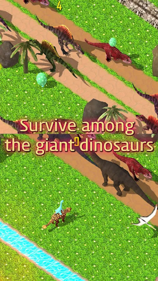 Baby Dinosaur Coco explores the dinosaur world by avoiding large dinosaurs.