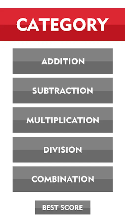 Addition, Subtraction, Multiplication, Division, and Combination.