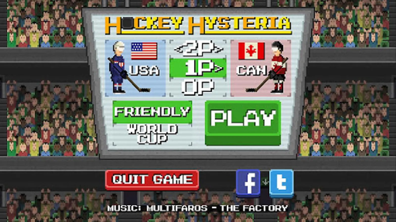 Hockey Hysteria is a fast-paced, physics-based hockey game that lets you play as one of 25 top-ranked international teams in the sport. Challenge your friends on a shared screen (or challenge the CPU) to an intense battle of first to five goals, or try your luck in the single player World Cup mode.