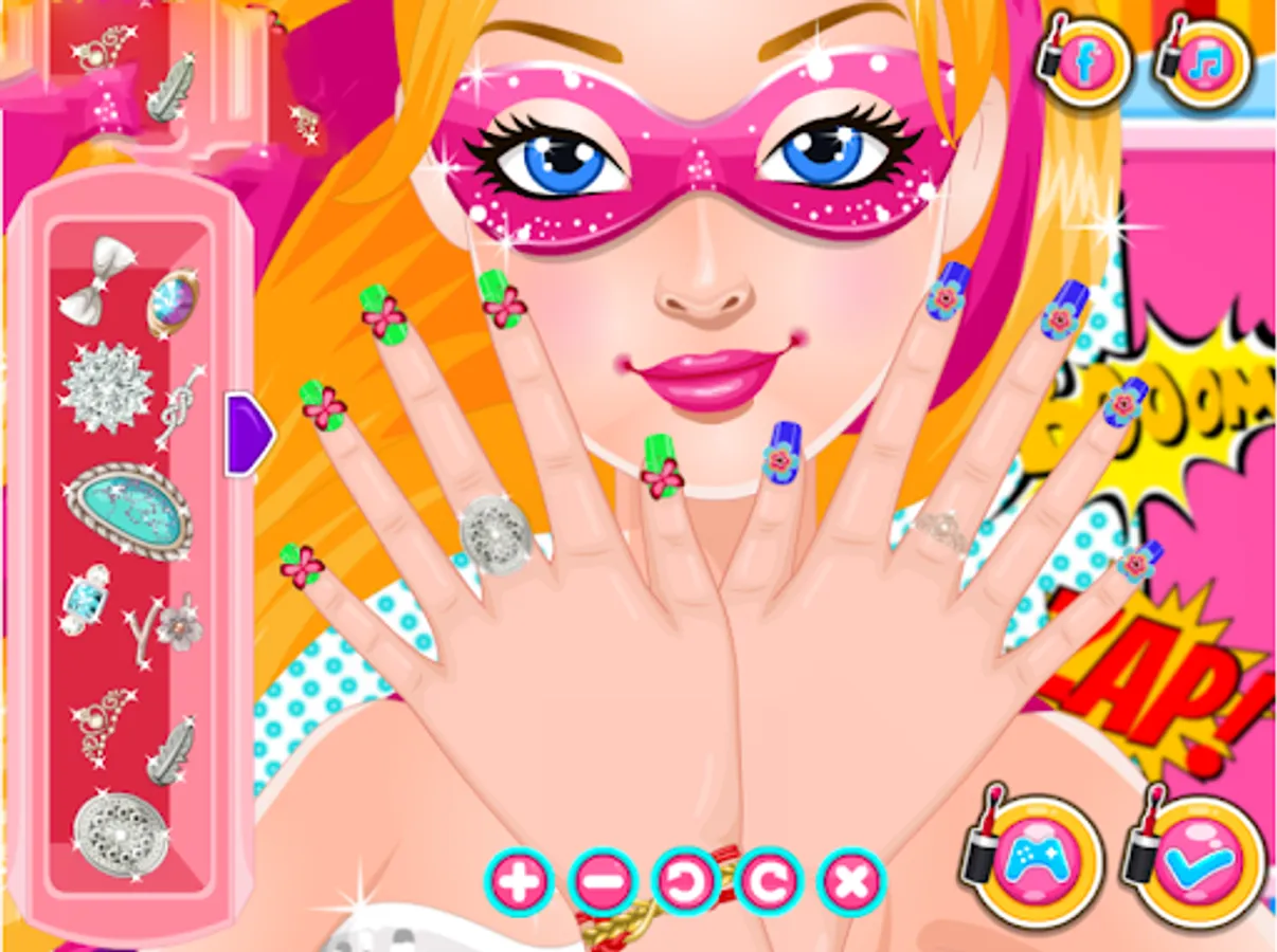 The application of nail beauty games - a girls' salon and makeup offers you many options for dressing girls, making up princesses, cutting girls' hair, choosing a bride's dress, and designing brides' nails