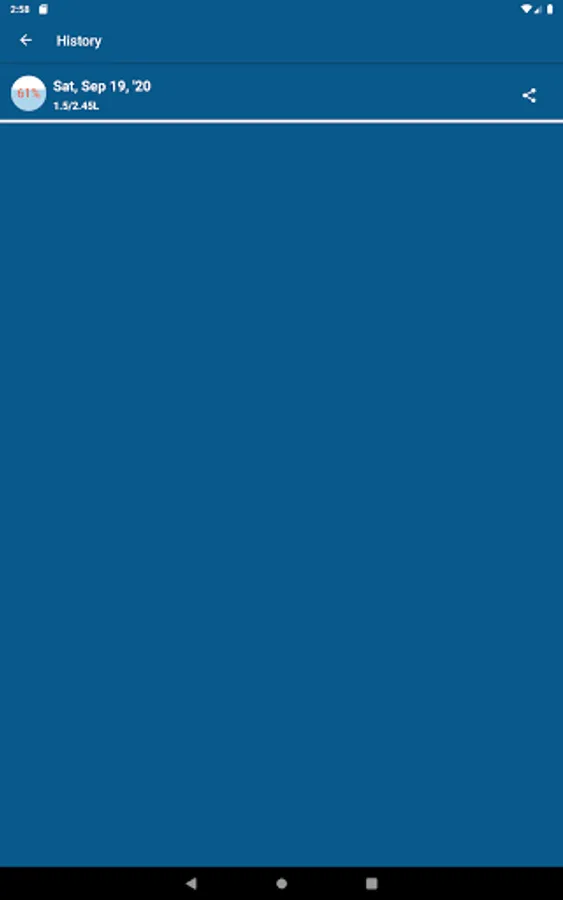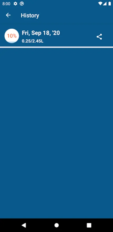 Drink Water History: shows history of water taken according to date and water amount in ml and percentage also.