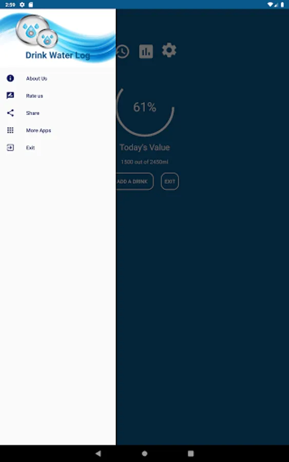 Drink Water Log also have a multiple glass sizes(ml), notification time intervals(hrs.) and time picker for both 12 and 24 (hrs.) format is available to set water reminder.