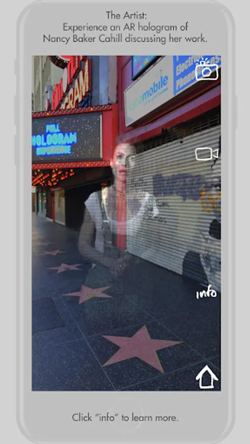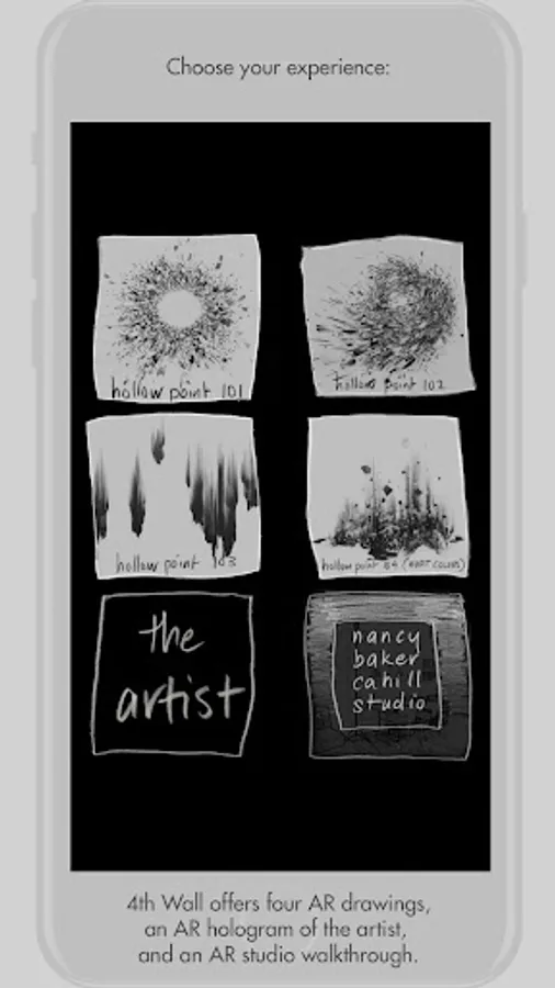 Tapping on one Baker Cahill’s AR dimensional drawings, the Studio, or the Artist
