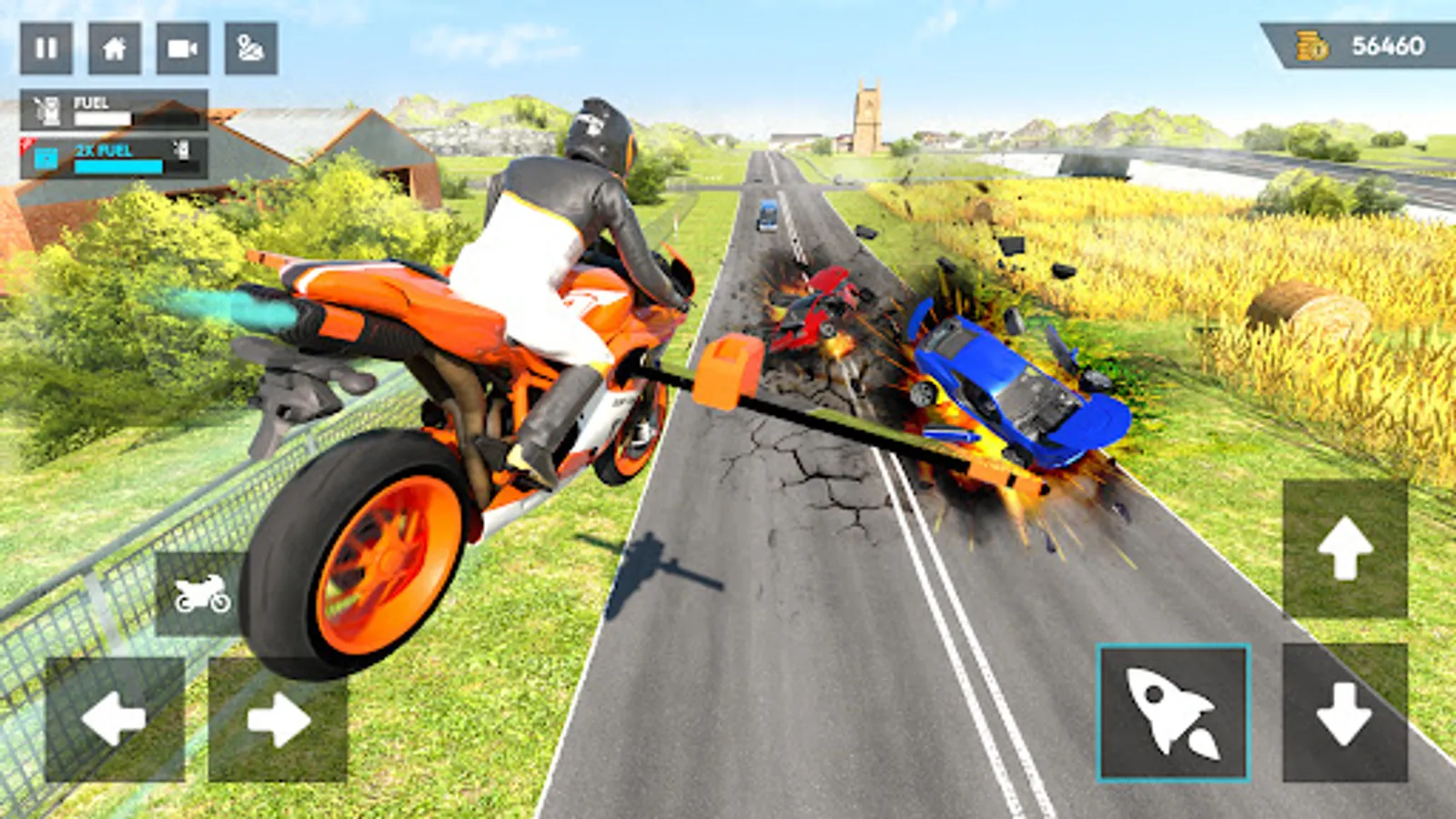 Get ready for an exotic & adventurous bike simulator game. Take your super motorbike, drive it along the road to get coins. There are different signs to move right left or forward-backward direction. Take dangerous tilt with passion but restrain from colliding. You can test your mad motorbike riding skills as well as flying skills both at the same time. Perform amazing stunts, go off-road by transforming your motorbikes into high-tech airplanes with the press of a single button. Complete the challenging levels to upgrade your mad stunt bike. Each bike has seven types of wings with a unique quality of flying. On completion of missions get rewards and earn coins to modify your crazy flying bike stunt riding simulator. You can unlock everything from the garage. Speed up your bike to move from one mission to other and when your bike is out of fuel refill it to restart. Break speed limits to fly high in the sky. Dodging cars and trucks while you speed up on the highway is a real challenge. The open-world map is designed in a creative way to test your motorbike skills and provide a realistic gameplay experience.