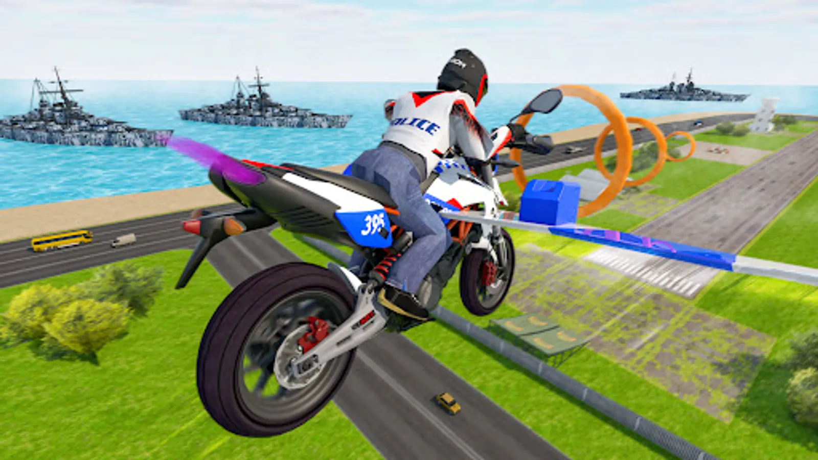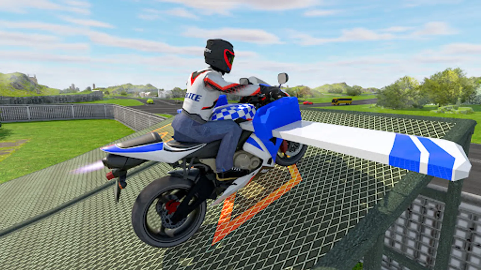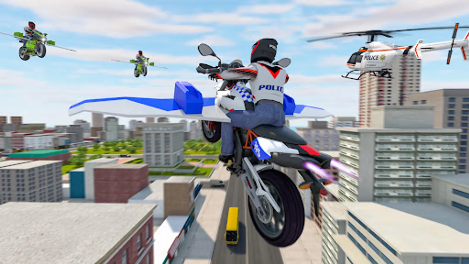 - Get gifts and a bonus as a reward in flying motor bike police games.