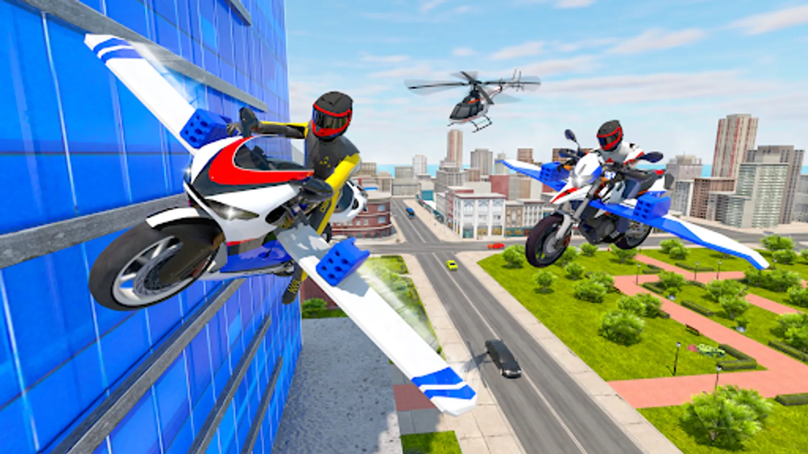 Flying Motorbike Police Games contains many motorcycle games features with modern bikes to drive and shoot enemy flying cars as police officers, unlike other flying bike simulator games. Get ready to become a flying police bike officer to patrol in the city and ride for gangster shooting to save individuals by flying bullets in free motorcycle flying games. Race fast motorbikes through busy city streets or take to the skies like an airplane with quick transformations and enjoy the real-world environment. Your game pleasure will be boosted with the realistic traffic system. This police motorbike game has challenges to be accomplished. Be a real police moto bike rider officer in a flying motorbike police game and complete motorbike missions