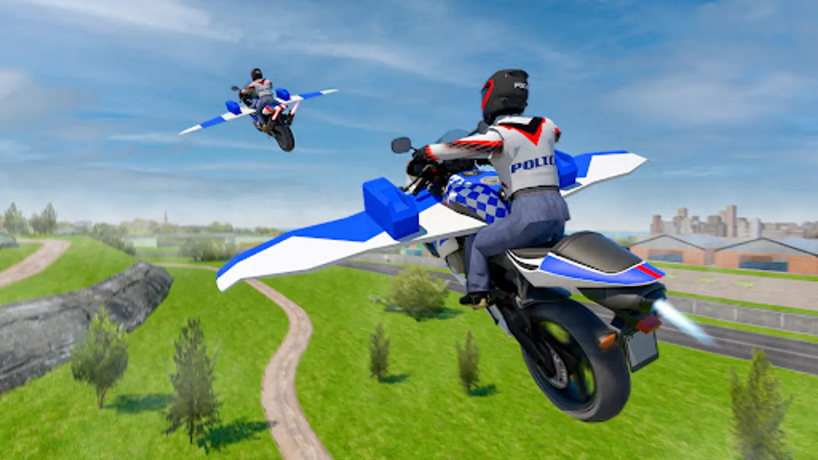 Flying motorbike police games bring the best of both driving and flying simulators. Made for all gamers, from beginners to pros, enjoy everything about both simulators all in one incredible package. Download the flying police bike game and enjoy the police flying game to rescue a city from city gangsters.