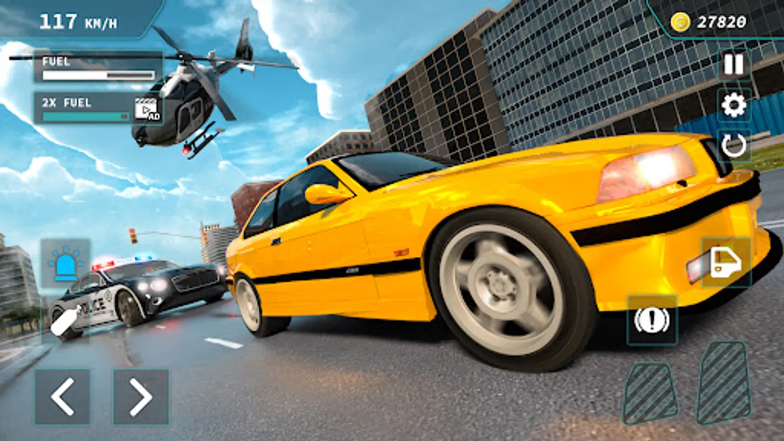 While driving a police car, you also have a NOS button on the screen, which gives your car a speed boost while chasing thieves in missions, making the game full of fun and joy.