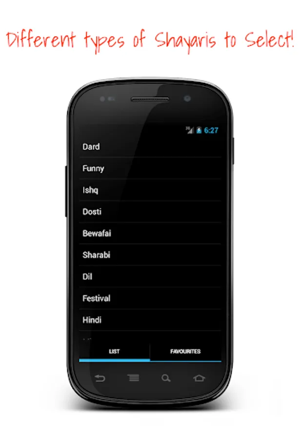 ✔ Different types of Shayaris to chose from a list.