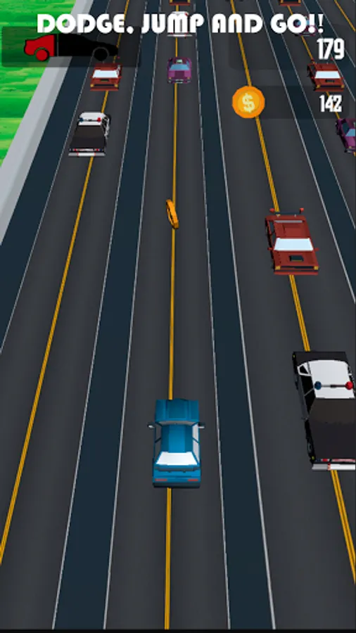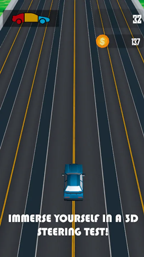 Immerse yourself in the 2D Car Crash race where you will have to advance as far as you can without crashing 2 times with cars coming towards you.