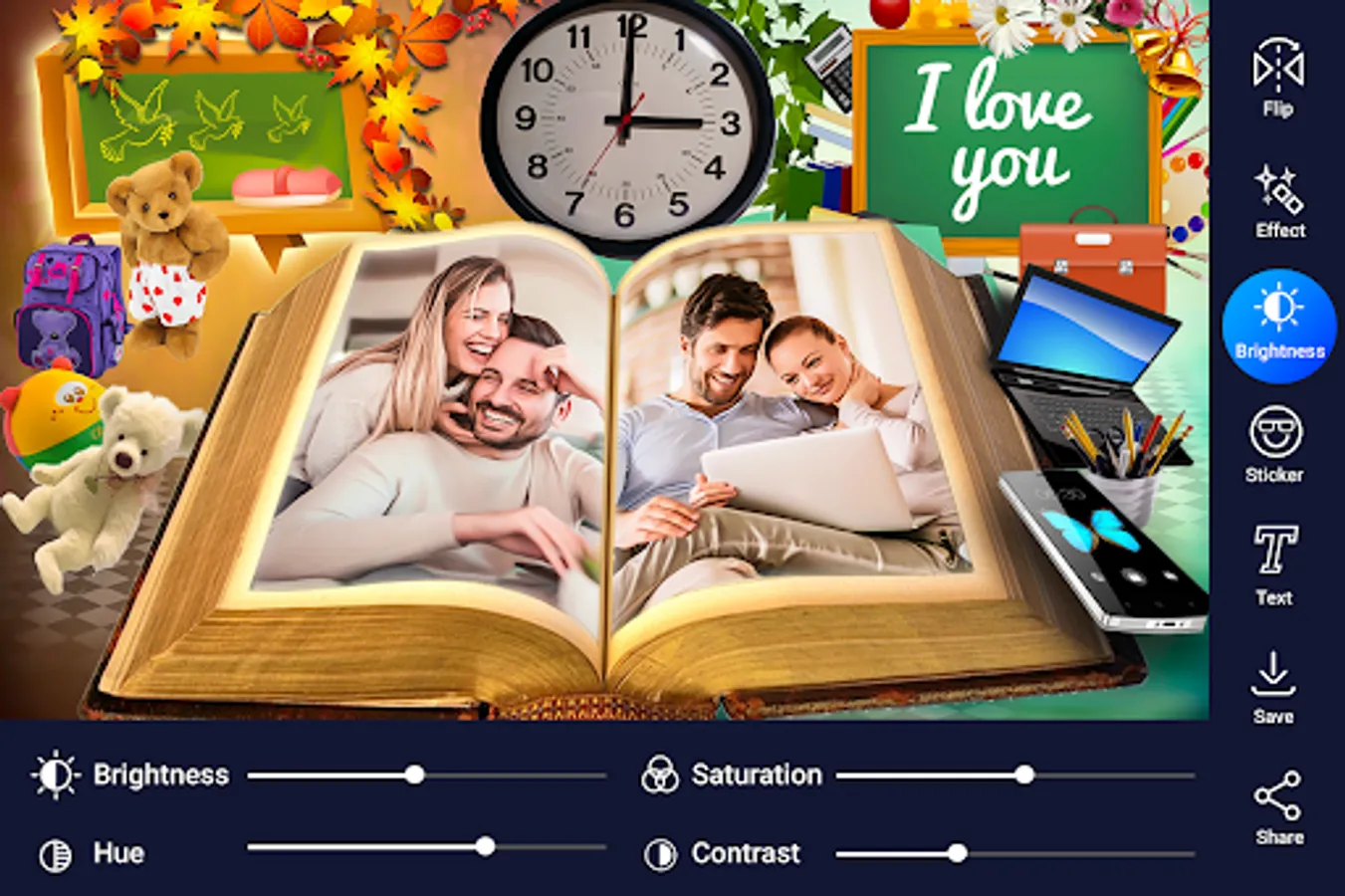 ✔ With this Photo Book Dual photo Editor: Photo Frame you can decorate your photo with lovely book photo frames and make photo album or photo book.