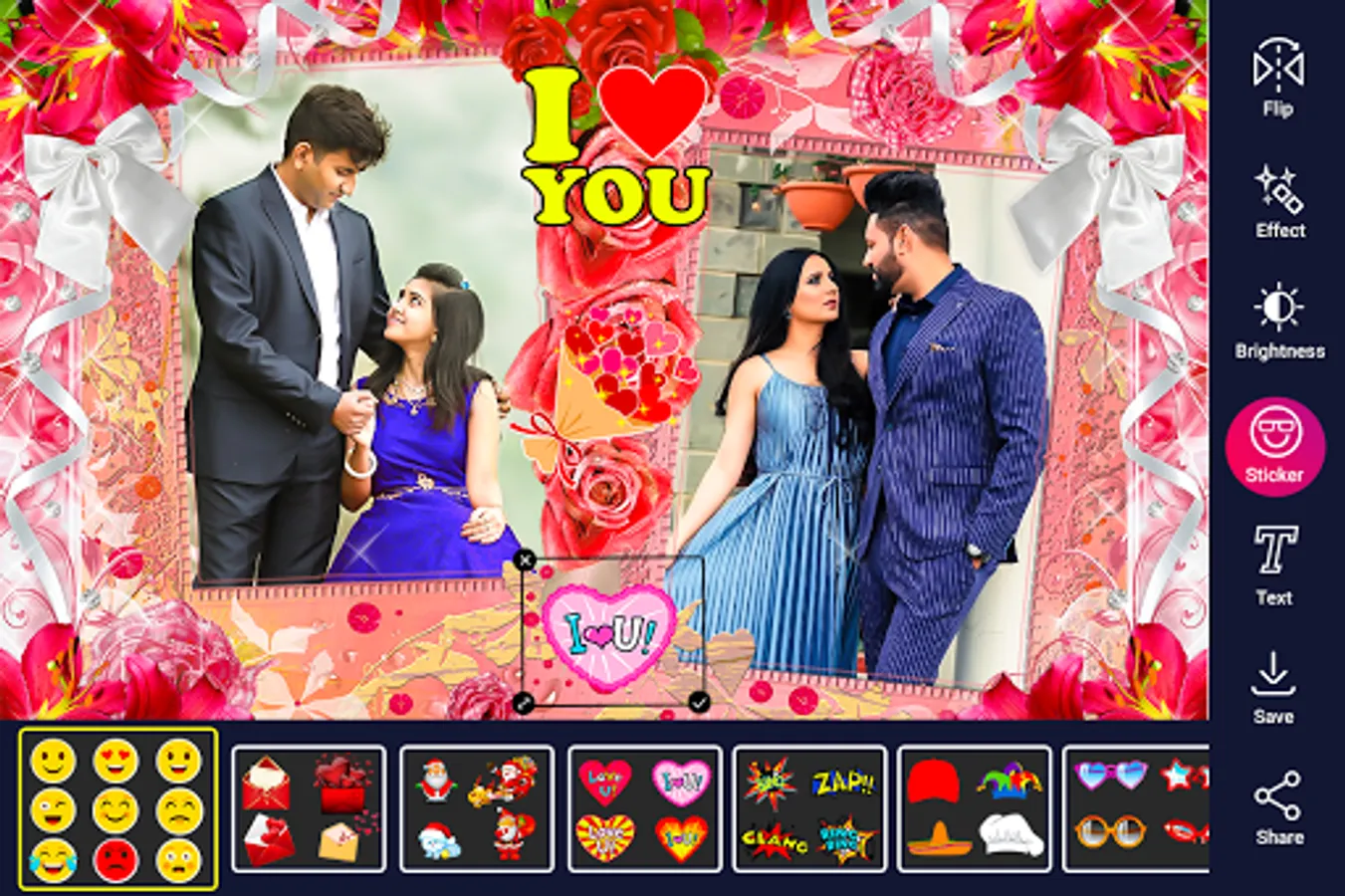 ► Share your Engagement Anniversary Photo Frames with your Couples or family members via social media.
