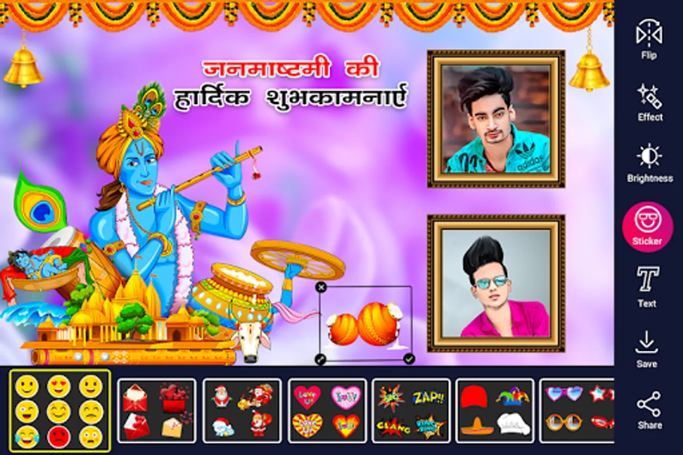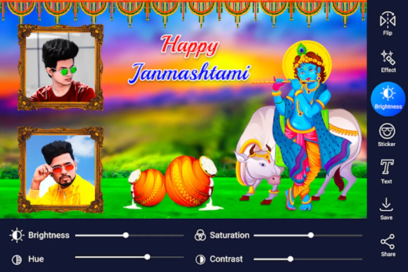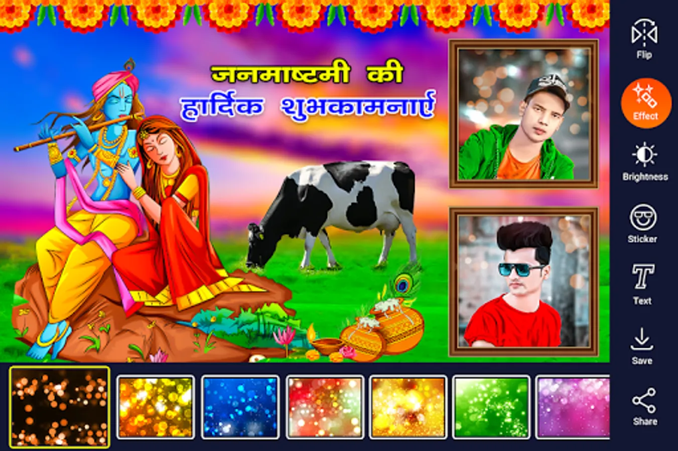 - After decorate your Krishna festival photo frame directly saved your SD card (or) your Phone Gallery.