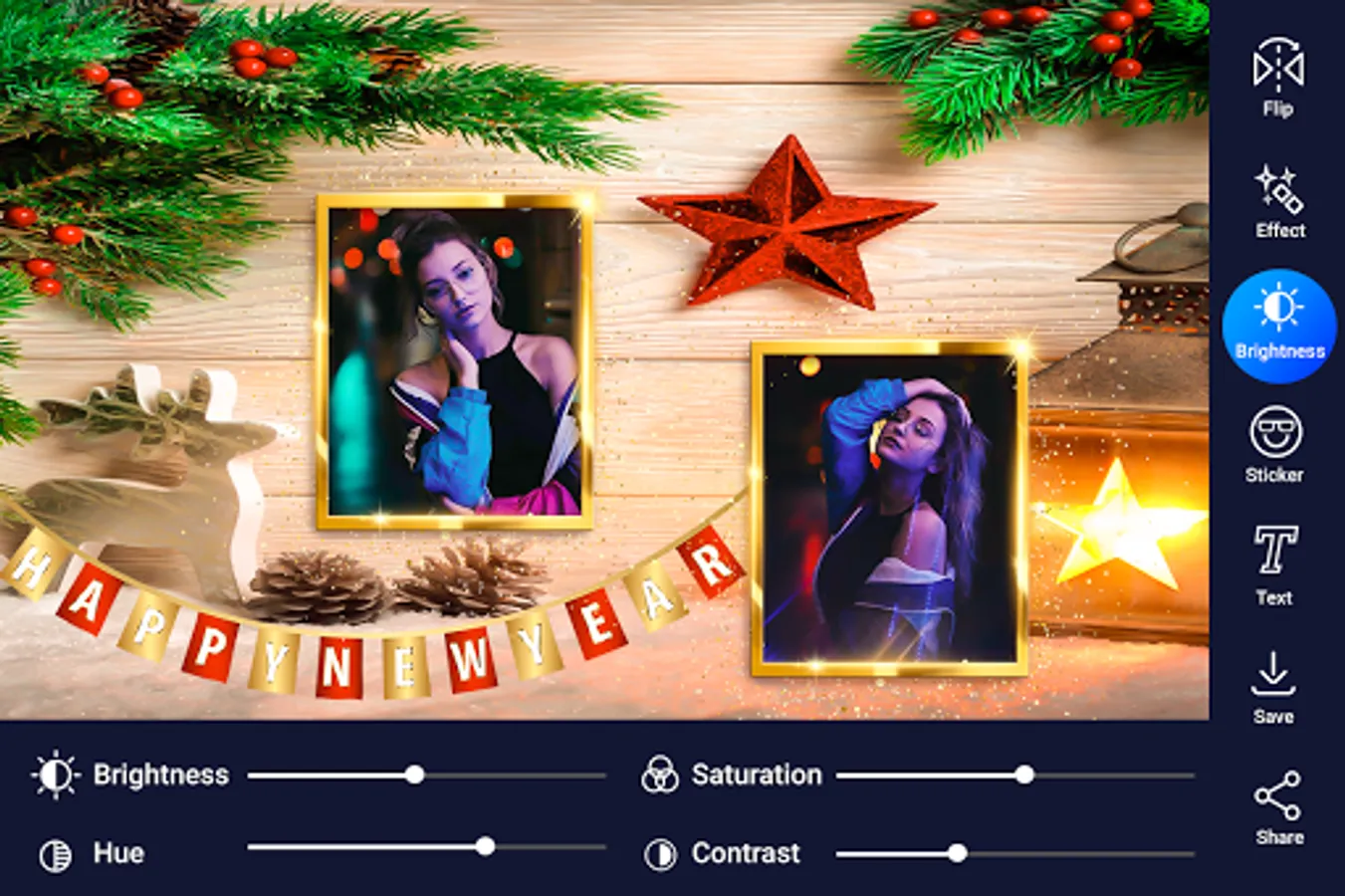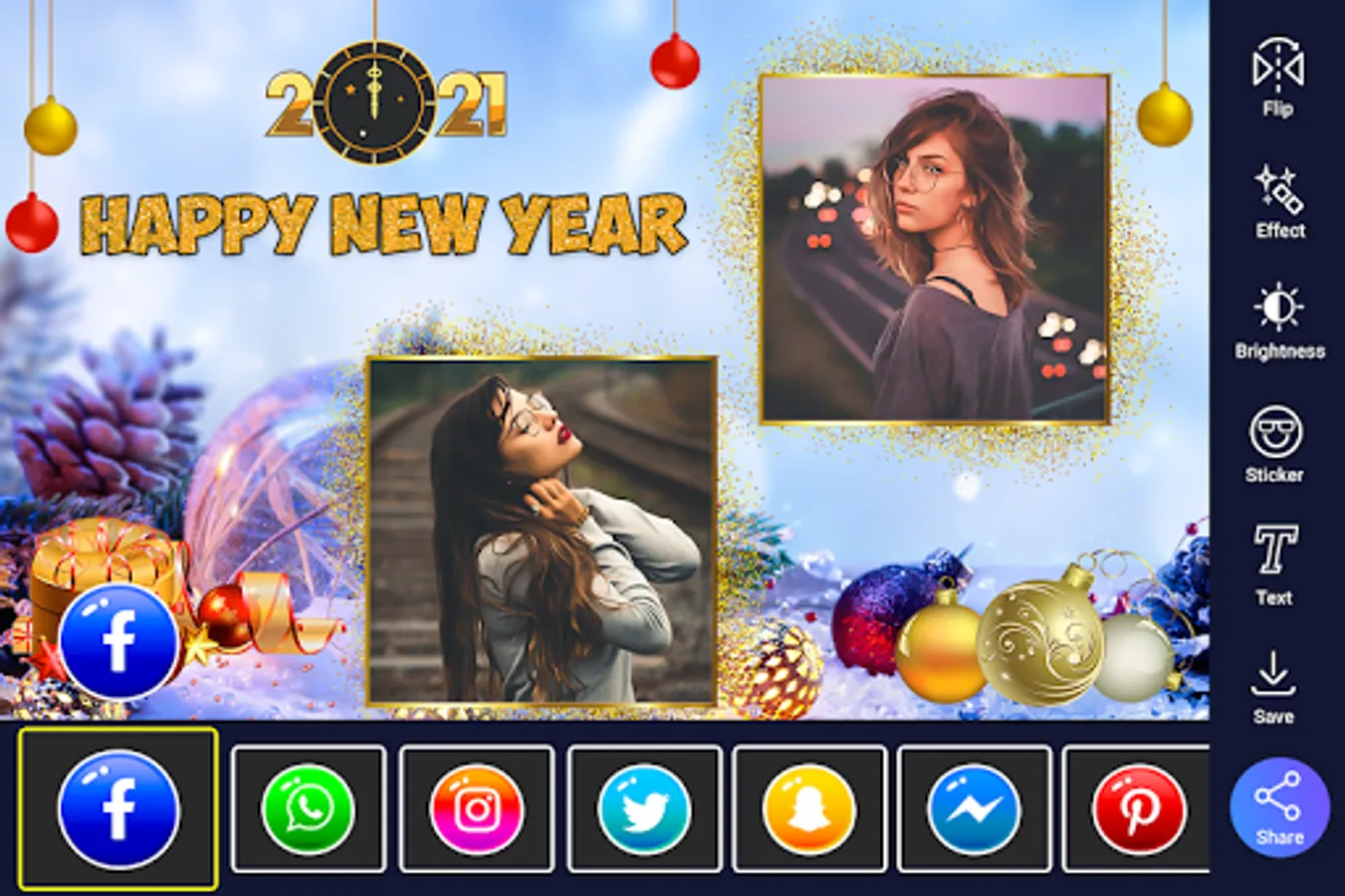 Create the best pictures with the photo in New Year Photo Frame Dual frames editor today!