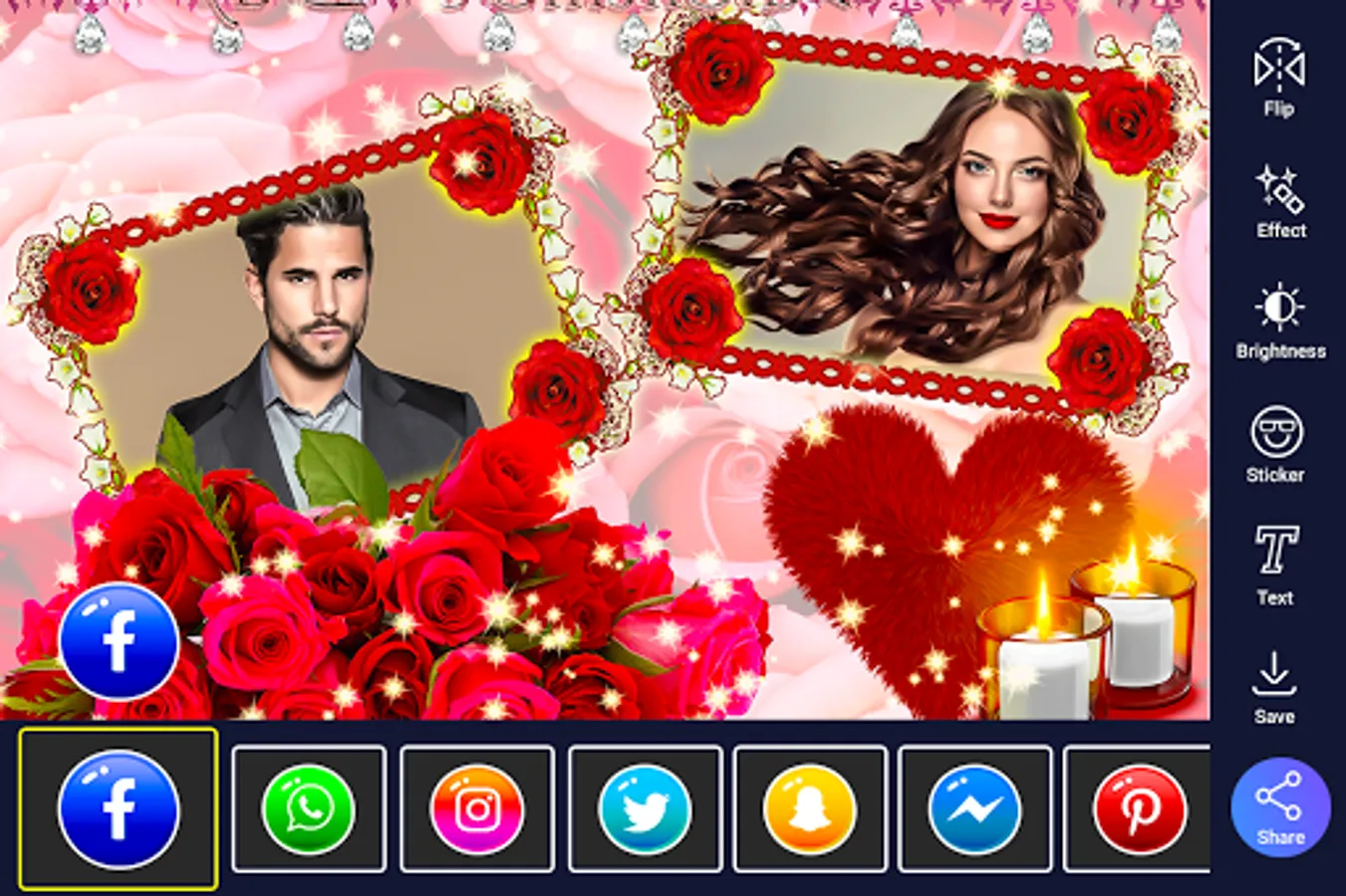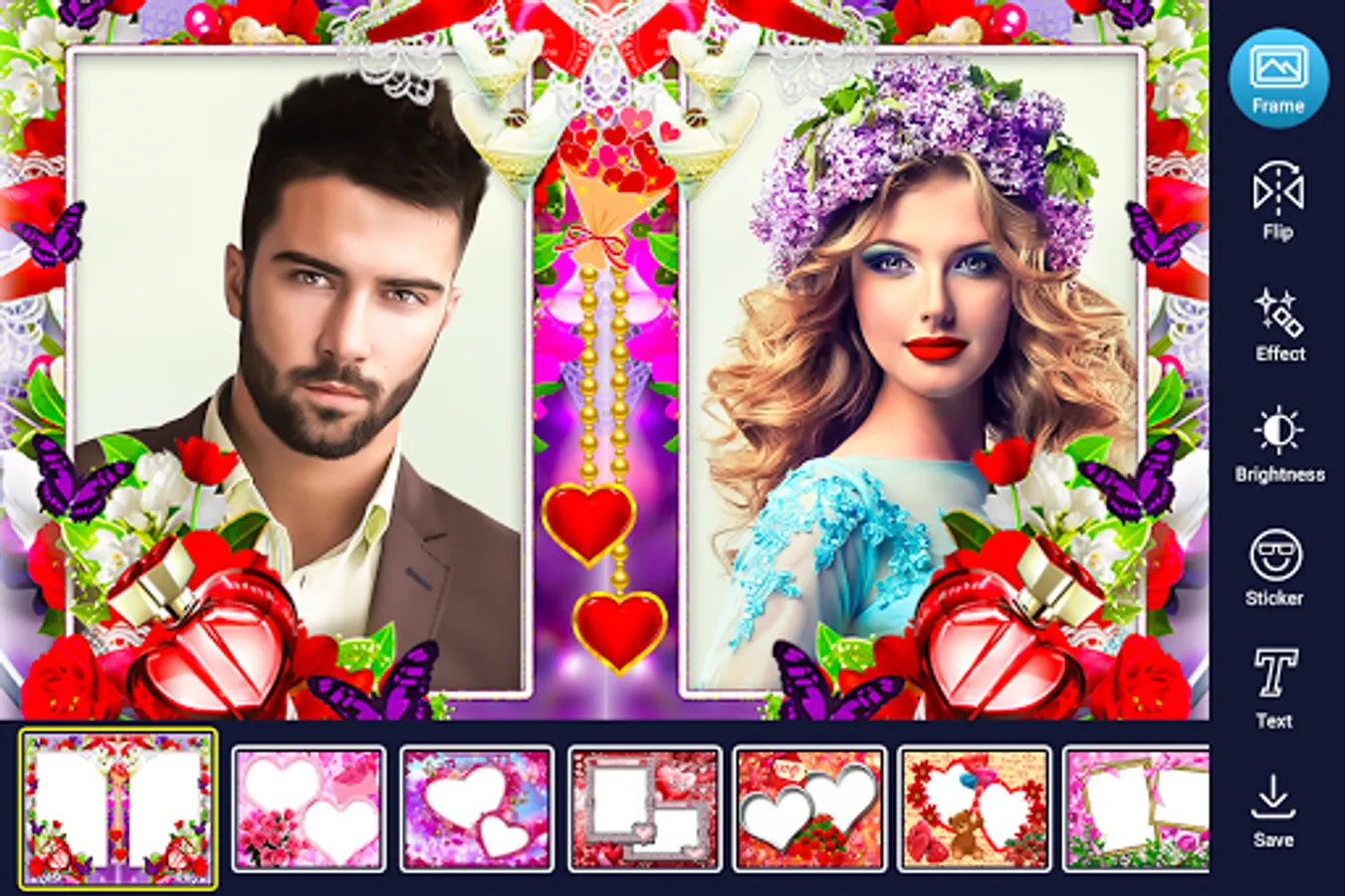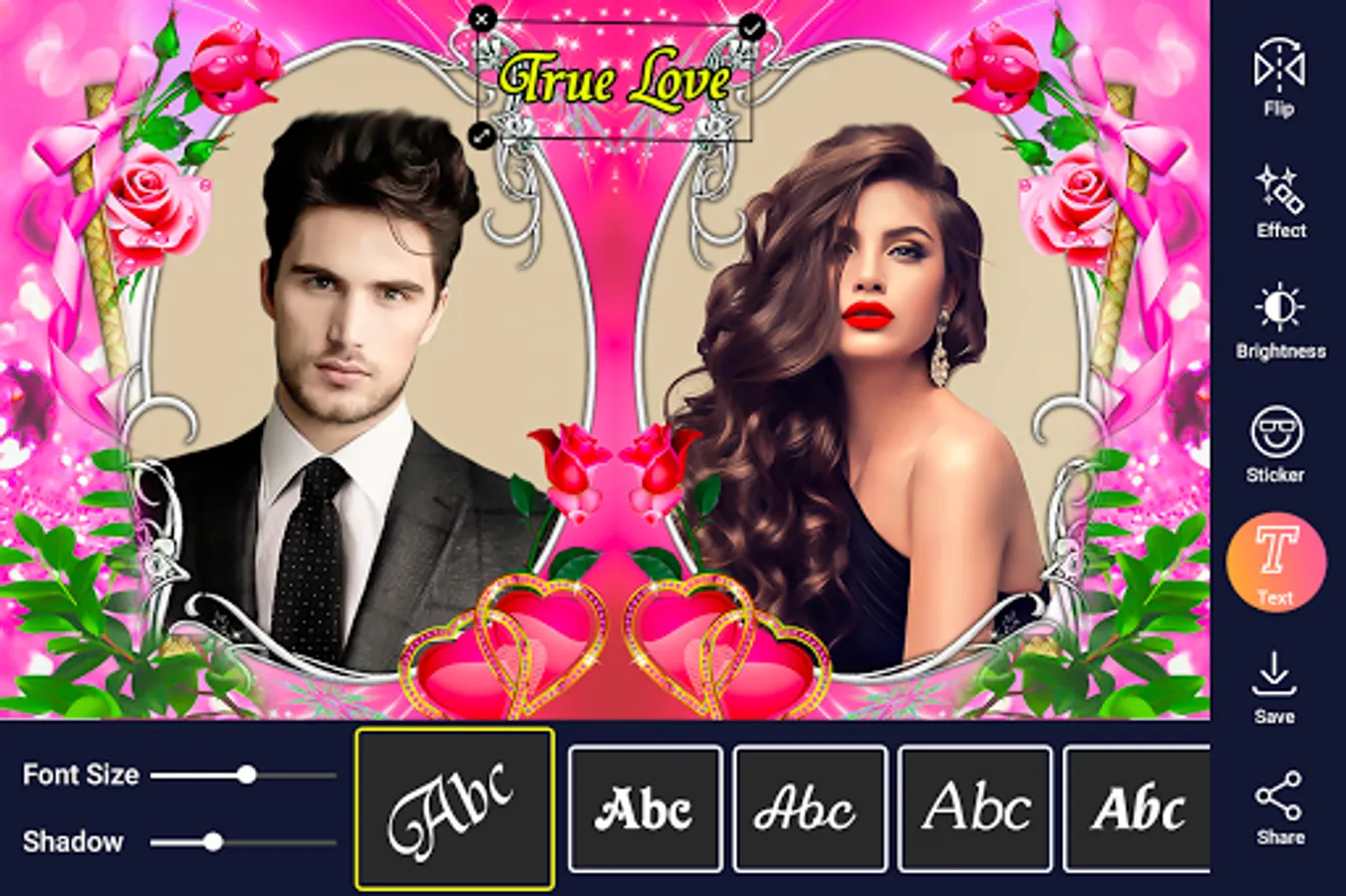 To create True Love romantic couple photo frames, you can set your dual photos and true love in forever frames. You can either edit your photos with frames and other photo effects, by selecting photos from mobile gallery or you can use to click photos with frames directly.