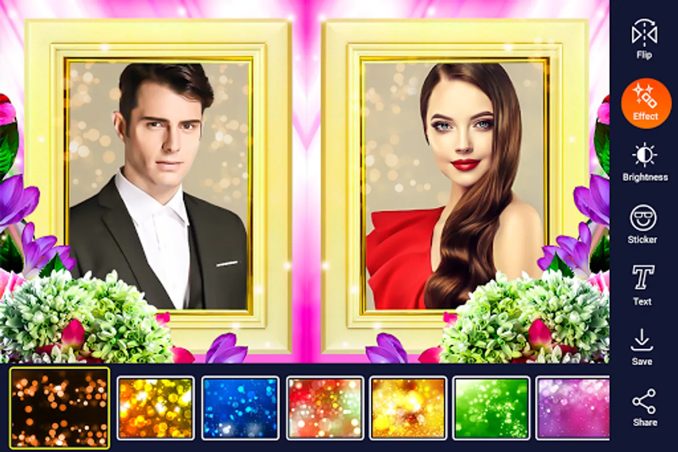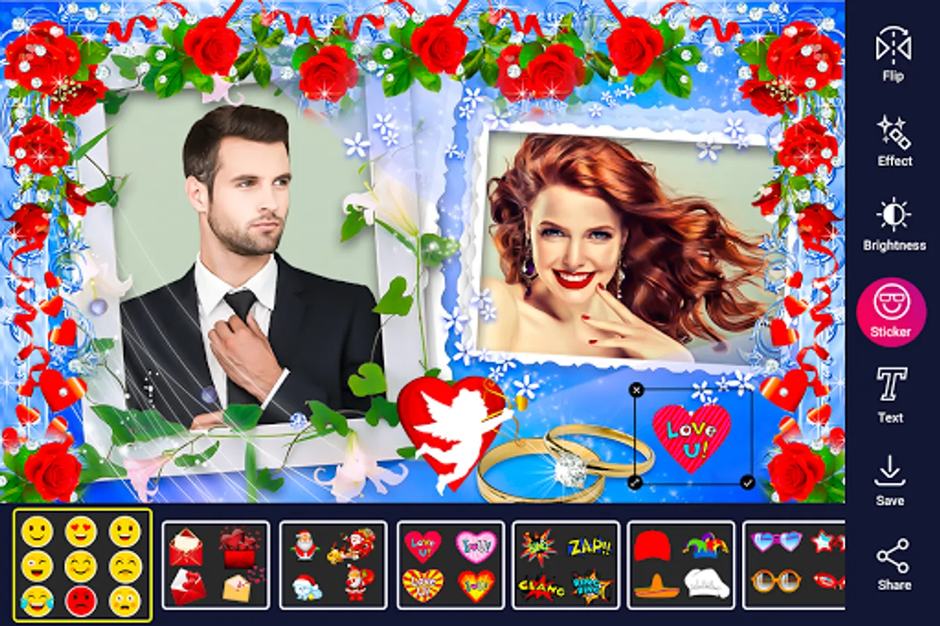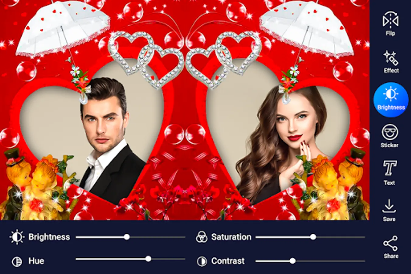 To create True Love romantic couple photo frames, you can set your dual photos and true love in forever frames. You can either edit your photos with frames and other photo effects, by selecting photos from mobile gallery or you can use to click photos with frames directly.