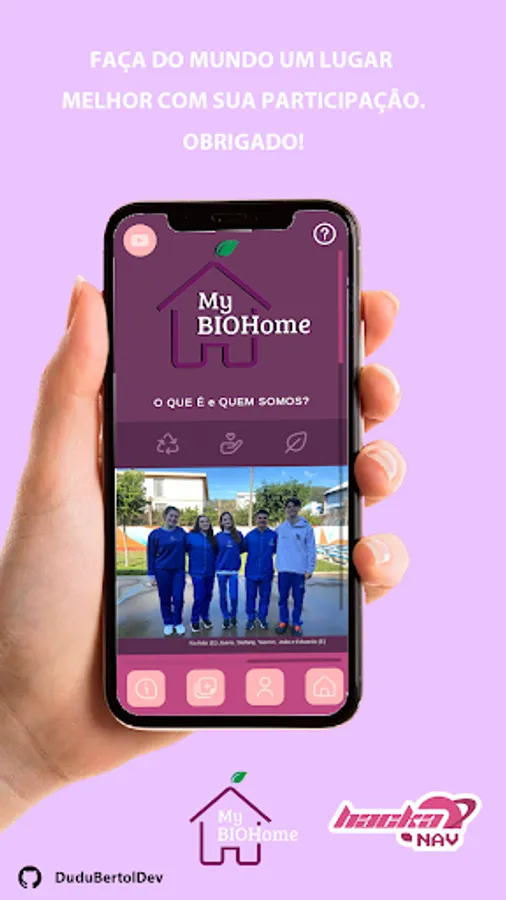 Us; Joana Cristina Pitol, João Victor Rigoni Brancher, Stefany Dadalt and Yasmin Sgari, along with Eduardo Baccon Bertol (DuduBertolDev), we created this application with the aim of finding a way to stop garbage from spoiling our landscapes, urban and rural, and collect it more efficiently.